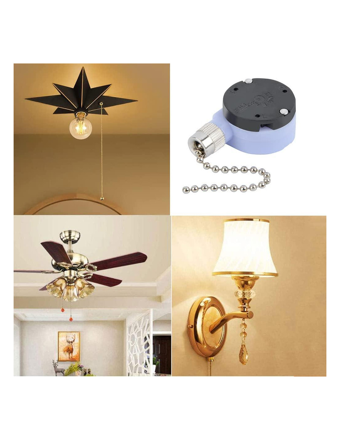 Especificaciones del Interruptor ZE-228s: Calificación eléctrica: 6A 125VAC - 3A 250VAC Tipo de Interruptor: interruptor de control de velocidad del ventilador / interruptor regulador de luz. Certificaciones: aprobado por UL (EE. UU.) - certificado por CSA (Canadá) Función: APAGADO, ALTO, BAJO Posiciones: APAGADO, L-1, L-2. Dimensiones del interruptor de cadena de tirar (aproximadas): 3.18 x 4.76 x 1.27 cm Material: Cuerpo de Plástico, cadena de tirar de Latón. Este interruptor de reemplazo para ventilador de techo es compatible con ventiladores Westinghouse, Harbor Breeze, Hunter, etc.
