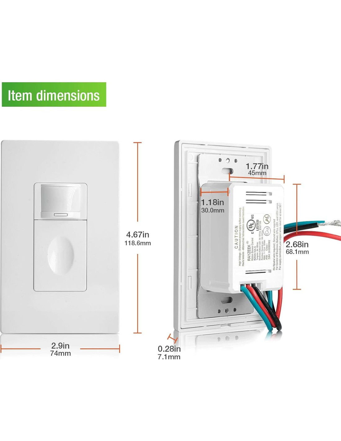 - [Fácil Instalación - Necesita Cable de Tierra, Sin Cable Neutro] Este interruptor de sensor de movimiento requiere un cable de tierra efectivo. Verifica tu casa antes de ordenar. El dispositivo no funcionará si no está conectado a tierra o si el cable de tierra no funciona. Uso en Interior de Polo Único Solamente. (NO adecuado para circuito de 3 vías)