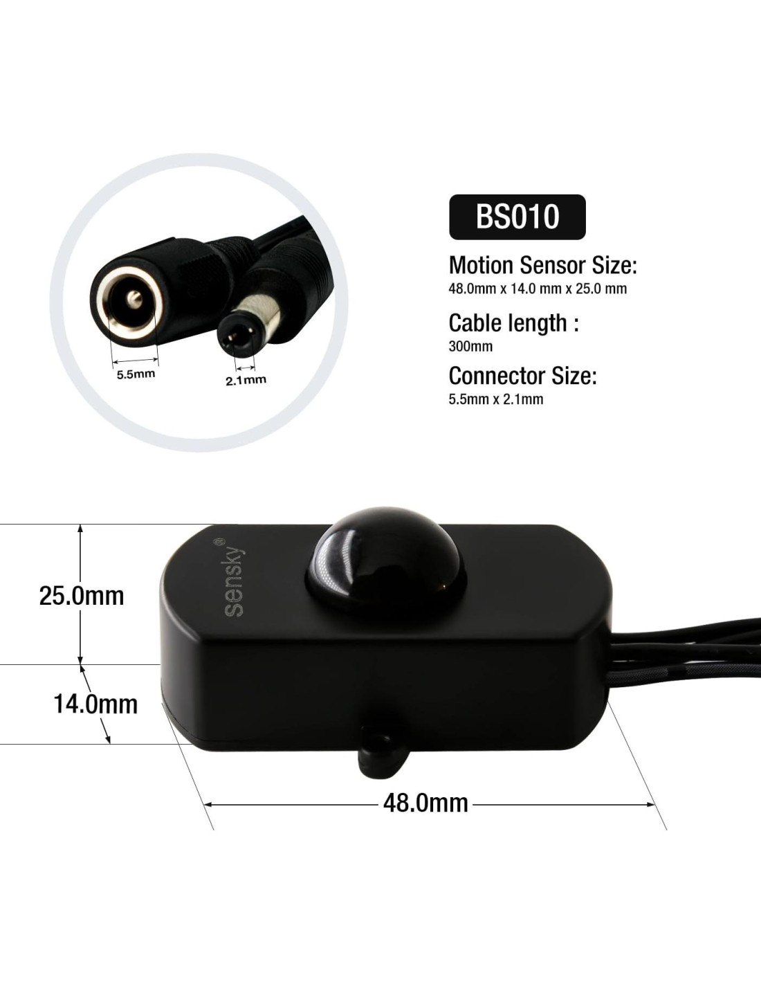- Activado por Movimiento: La función del sensor se activa por movimiento, puede usar este pequeño interruptor de sensor de movimiento para controlar la iluminación como la iluminación de tiras LED.