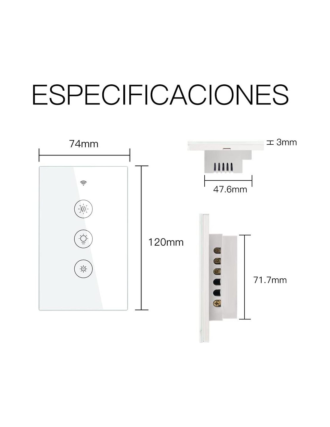 - Atención: Se requiere cable neutro/ Solo soporta WiFi de 2.4GHz/ Instalación sin energía; configuración del estado del relé y recuerda el último estado del relé opcional cuando se apaga, interruptor de luz de fondo Encendido/Apagado.