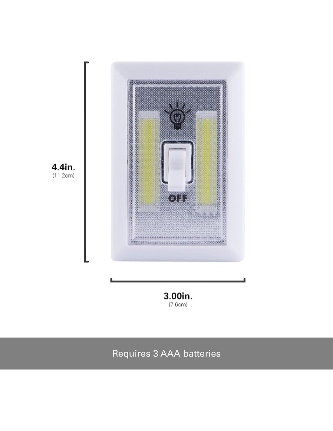 - LED Funciona con Baterías - Este interruptor inalámbrico requiere 3 baterías AAA (no incluidas) y no requiere cableado, lo que lo convierte en una conveniente luz de pared inalámbrica o luz de armario