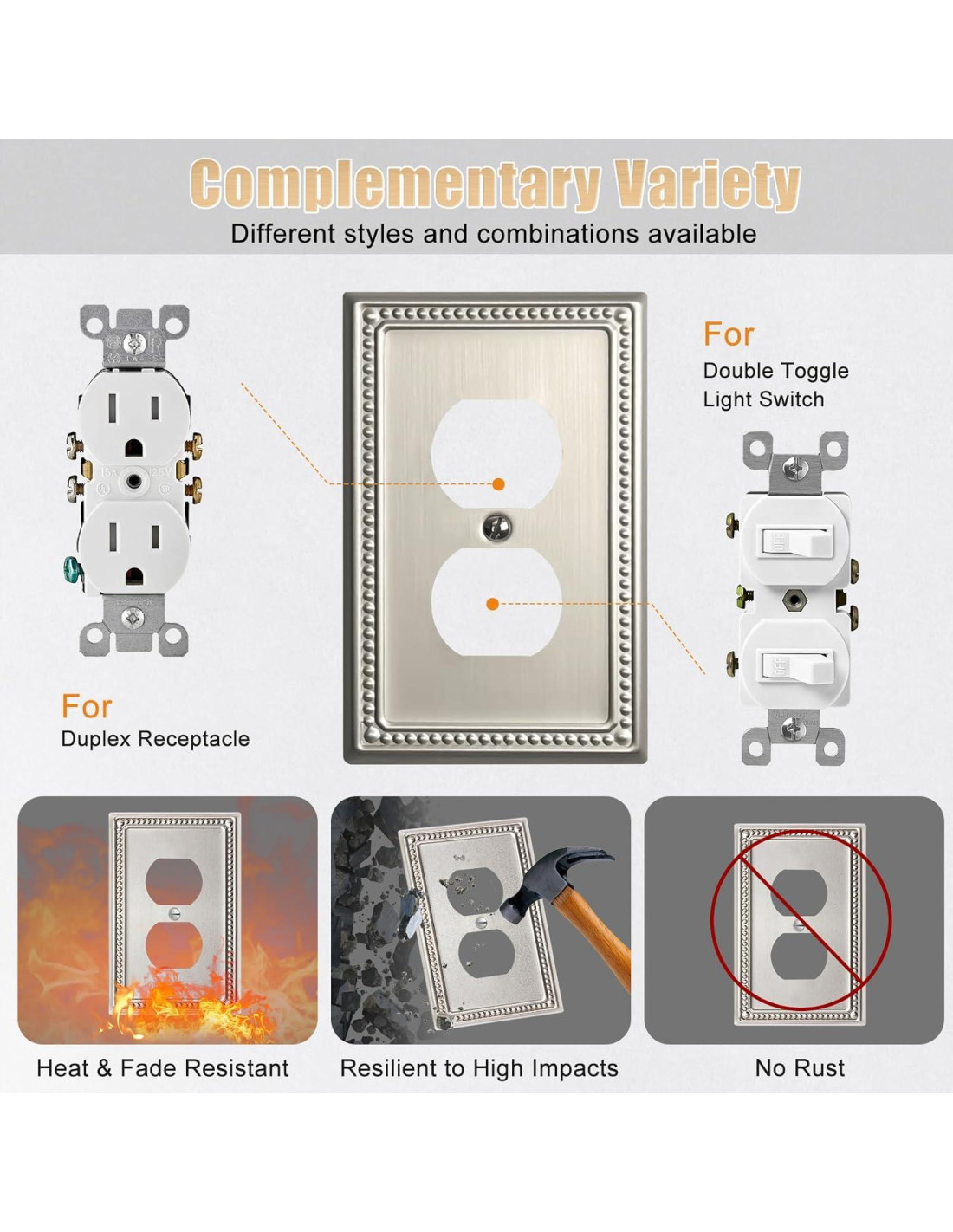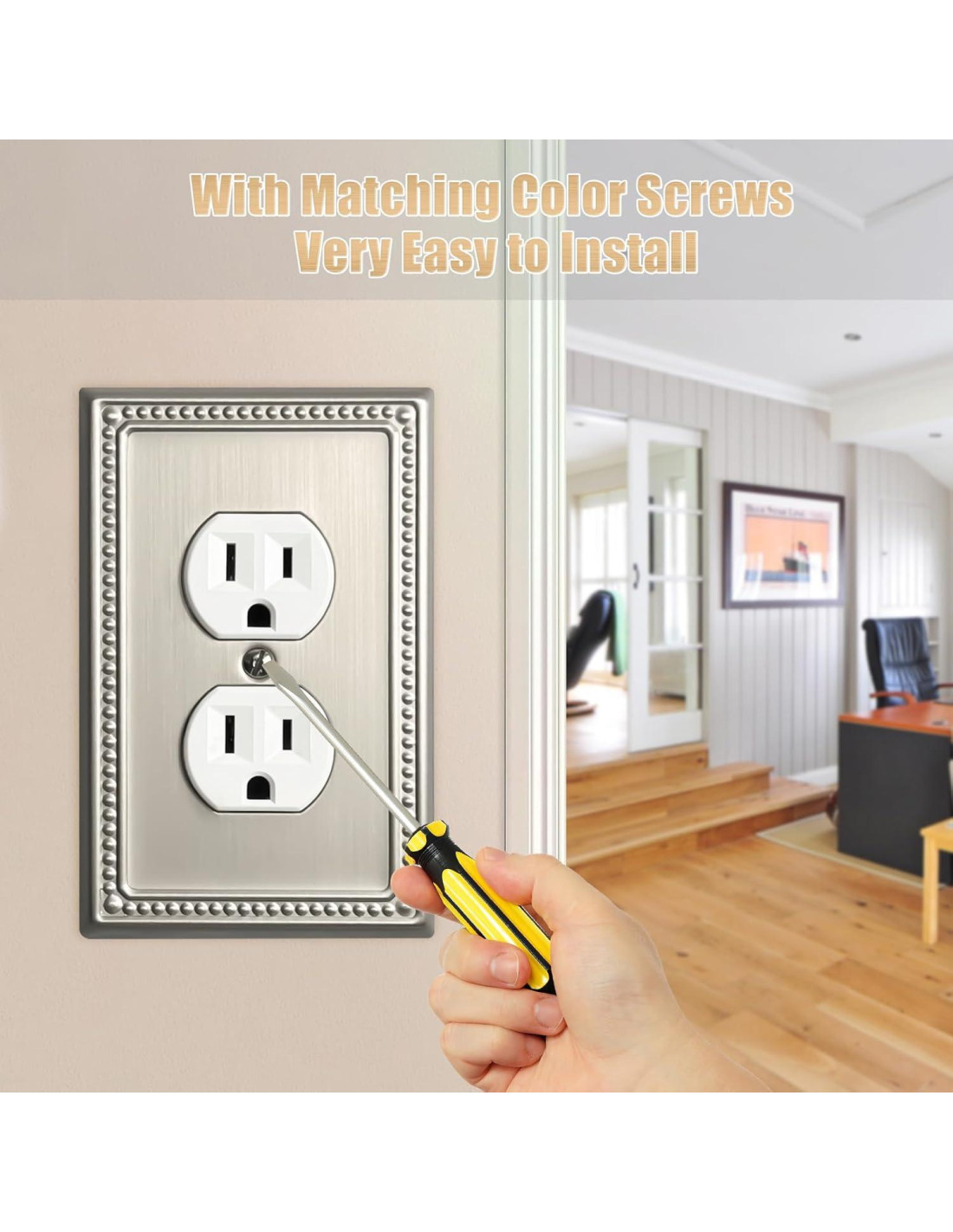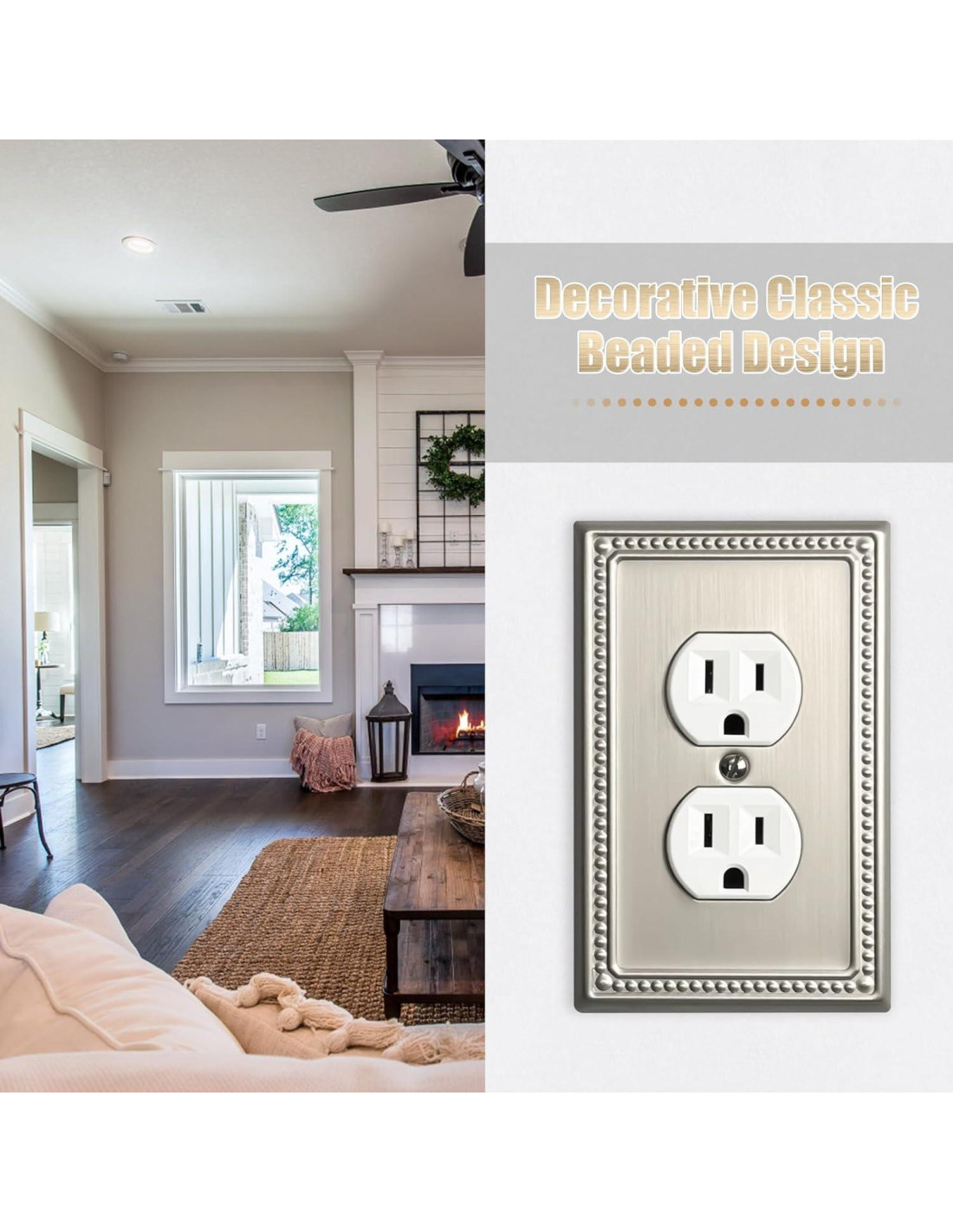 - LA PLACA DE PARED DE INTERRUPTOR CON PERLAS CLÁSICA: La clásica placa de pared de interruptor de luz con perlas no solo tiene un estilo tradicional y retro, sino que también tiene un estilo moderno y elegante. El acabado de níquel satinado es probablemente el color de decoración del hogar más popular.