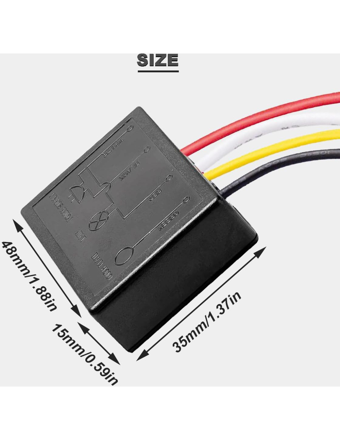 - ESPECIFICACIÓN: Material: carcasa de ABS; Voltaje nominal: 220V; Corriente nominal: 1A; Tamaño de la carcasa: 1.9 x 1.2 x 0.6 pulgadas (4.83 x 3.05 x 1.52 cm); Longitud del cable: 4 pulgadas (10.16 cm).
