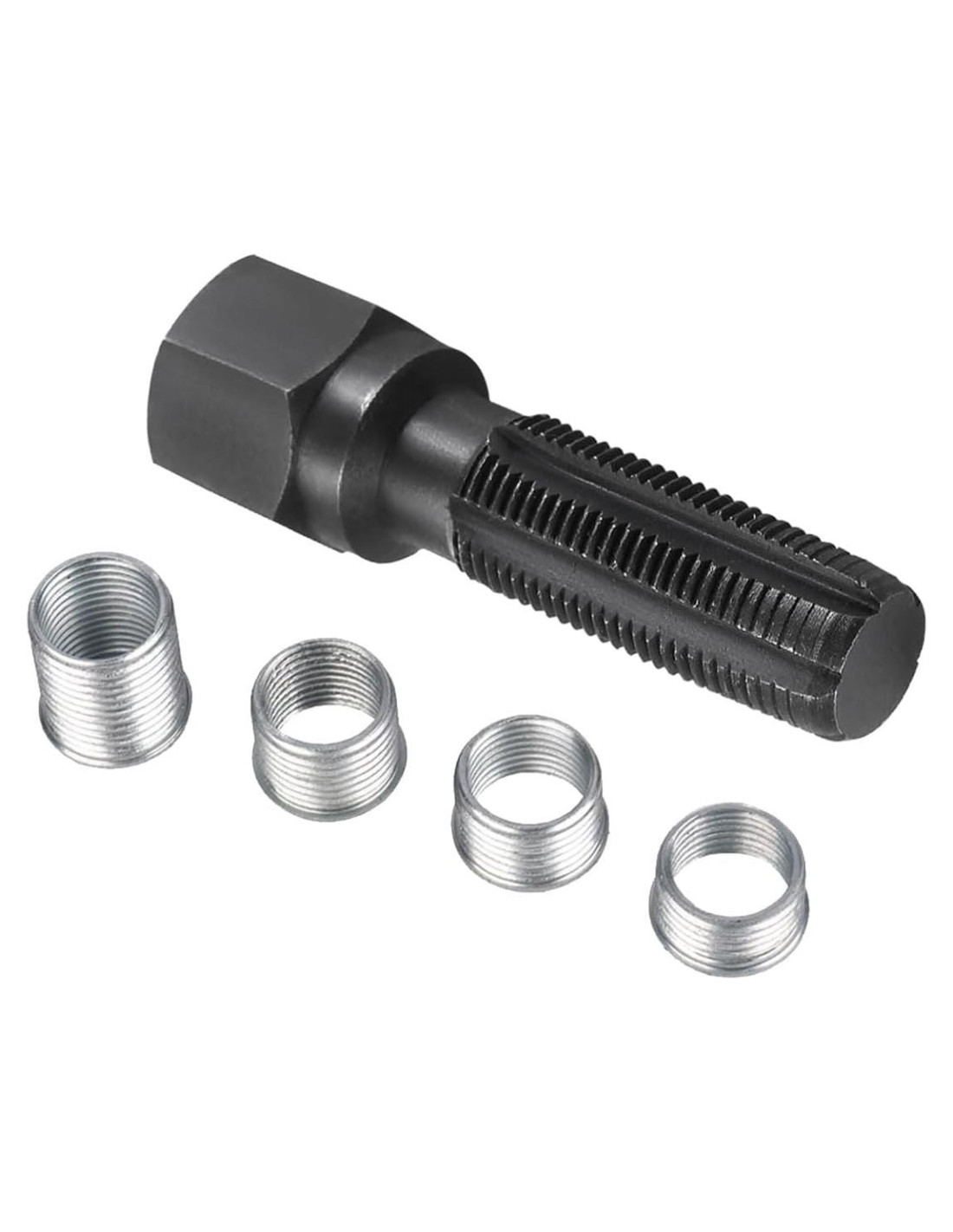 - Función: Este kit de reparación de roscas de bujía puede reparar eficazmente las roscas de bujía dañadas, ayudando así a extender la vida útil de las bujías y mejorar el rendimiento general del vehículo. Es fácil de operar y no requiere habilidades complejas, por lo que incluso aquellos sin experiencia pueden comenzar fácilmente.
