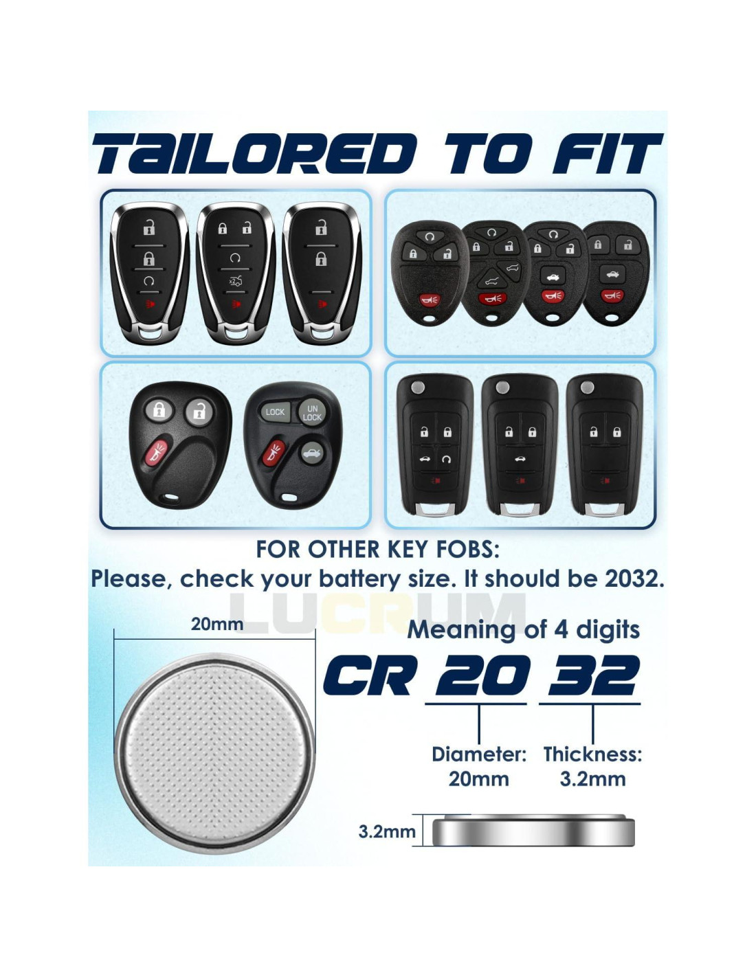 - Compatibilidad Precisa: Ideal para modelos de Buick, esta batería de moneda CR 2032 de 3 voltios coincide con las especificaciones OEM para Allure (2010-2019), Enclave (2008-2021), Encore (2013-2022), Regal (2011-2021) y otros modelos listados en la descripción.