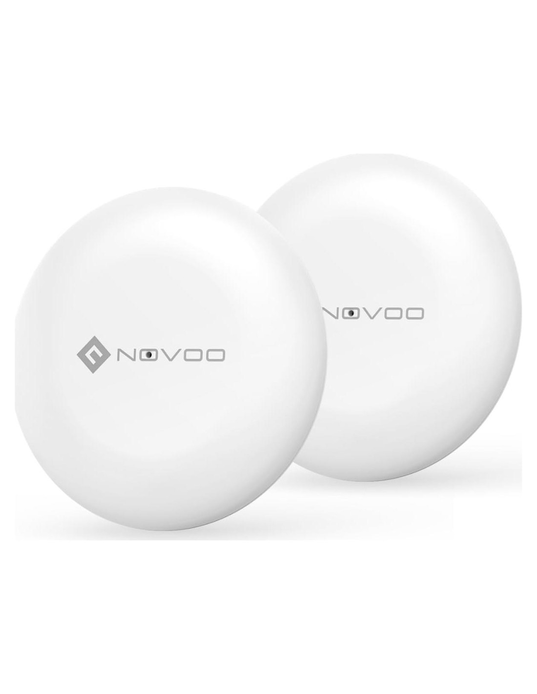 - Conéctate con dispositivos Apple y Google. Impulsado por el avanzado chipset AIROHA, el rastreador Bluetooth NOVOO está oficialmente certificado para trabajar con Apple Find My y Google Find My Device. Diseño compacto del tamaño de una moneda (32 x 8.4 mm) que se adapta a billeteras o se adhiere a pertenencias. Nota: Soporta una plataforma a la vez, no uso simultáneo.