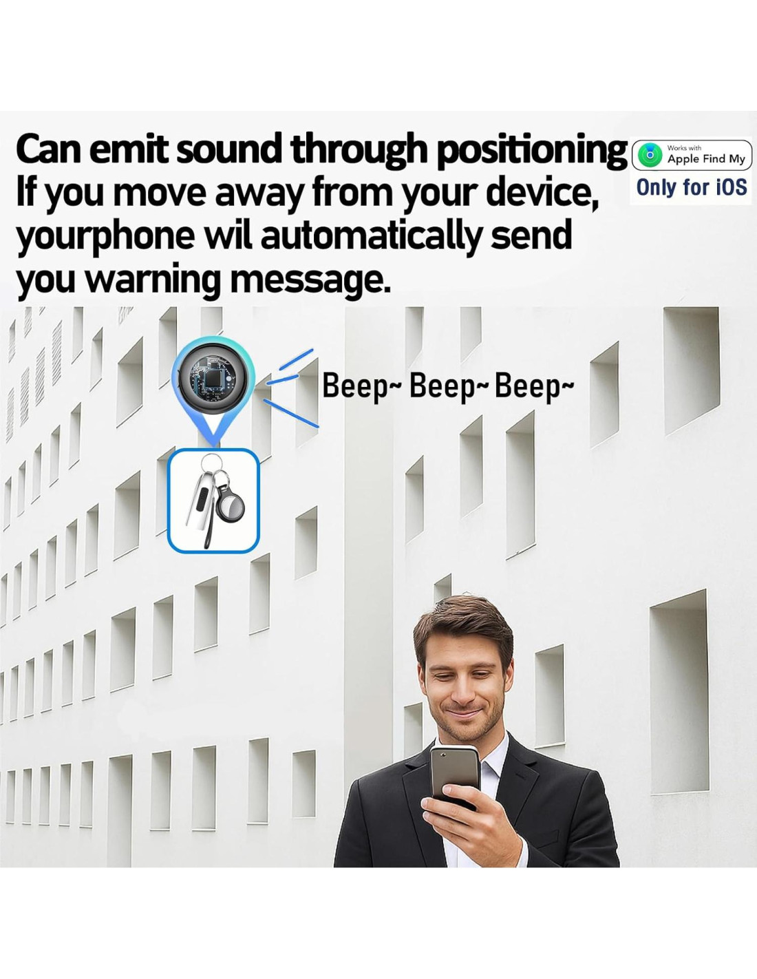 - [RASTREA EN CUALQUIER LUGAR] : El rastreador de Tukio te permite ver la ubicación de tus artículos en tiempo real. Cuando la distancia es menor a 200 pies, simplemente puedes tocar la aplicación "Find My", y el localizador de llaves con sonido emitirá un pitido de 80-100dB para ayudar a encontrar tus cosas, o simplemente pedir ayuda a Siri. Cuando la distancia es mayor a 200 pies, puedes encontrar artículos más lejanos con la ayuda de cientos de millones de dispositivos Apple en la red "Find My".