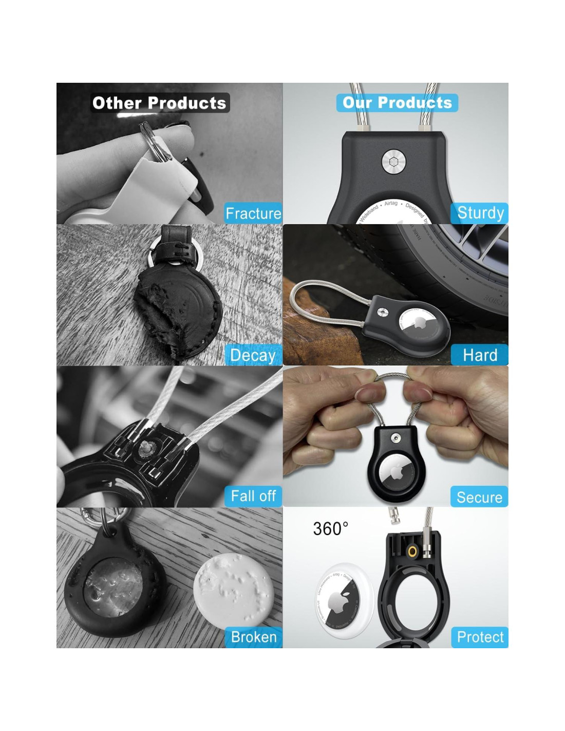 - Super duro y resistente llavero Airtag. El soporte seguro para Airtag adopta un tornillo de socket hexagonal y un duradero cable de acero trenzado para fijar de forma segura el nuevo Apple Airtag en el llavero de reloj Airtag, por lo que no hay necesidad de preocuparse por que el llavero Airtag de Apple se deslice y se dañe violentamente. Este soporte para llavero Airtag presenta un diseño hueco para garantizar la integridad de la señal del Airtag. (Los accesorios de Airtag no contienen el rastreador GPS iPhone Apple Airtag)