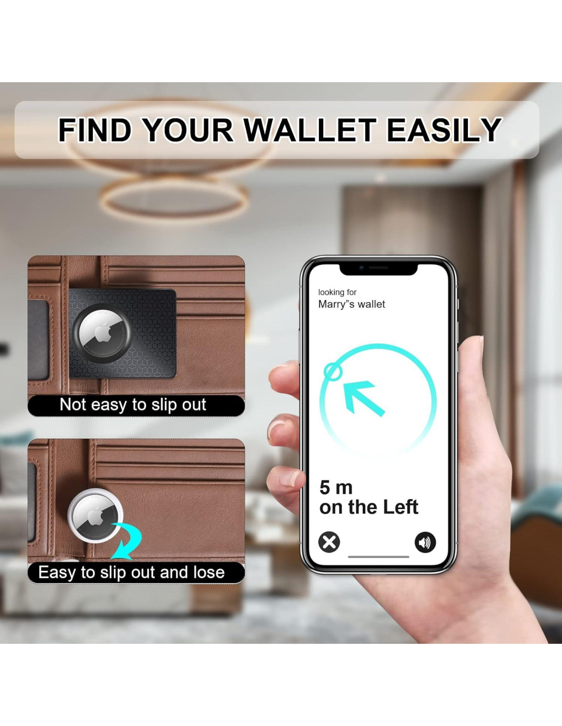 - Instalación en 3 segundos: El mecanismo de bloqueo por presión permite una instalación sin herramientas: simplemente coloca tu AirTag en el soporte de tarjeta Airtag. Permanece en posición segura mientras se puede colocar fácilmente en la billetera como una tarjeta de crédito.