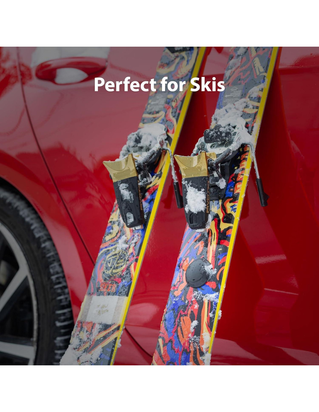 - Diseñado para esquís y tablas de snowboard. Igualmente excelente para remolques, vehículos, motocicletas, ATV, embarcaciones, equipos, portabicicletas, cosas de camping, lentes de cámara, etc.