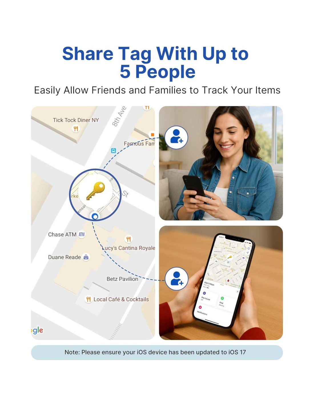 - Seguimiento en tiempo real con la aplicación Apple Find My - Encuentra rápidamente tus artículos extraviados como llaves, bolsas o mascotas usando tu iPhone. Sin aplicaciones adicionales ni tarifas - totalmente compatible con el ecosistema Find My de Apple.