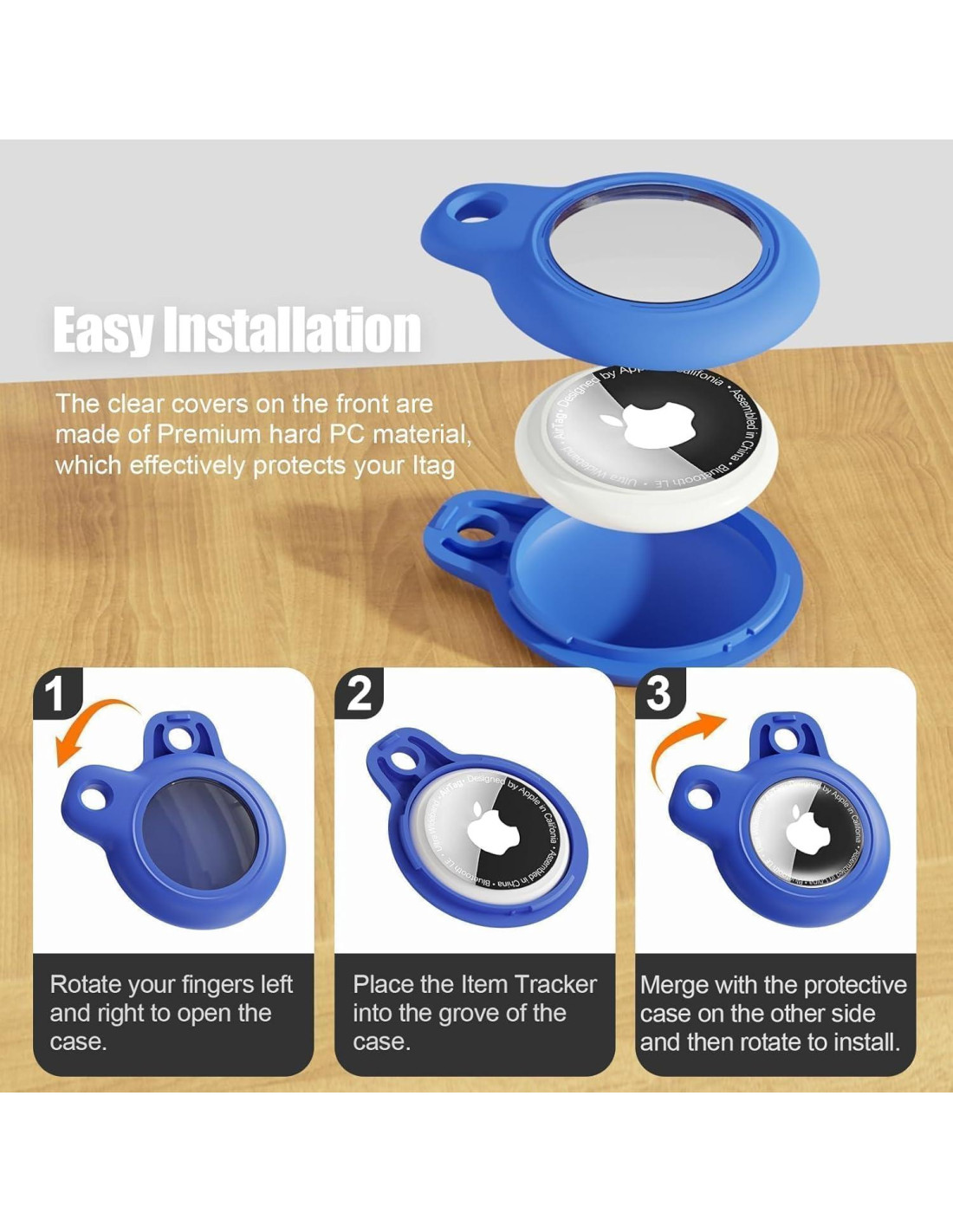 - Fácil de instalar: gira a la izquierda o a la derecha para abrir la funda, coloca tu localizador de artículos en la funda, y luego gira para instalar. (Consejo: Consulta la imagen para los pasos específicos de instalación)