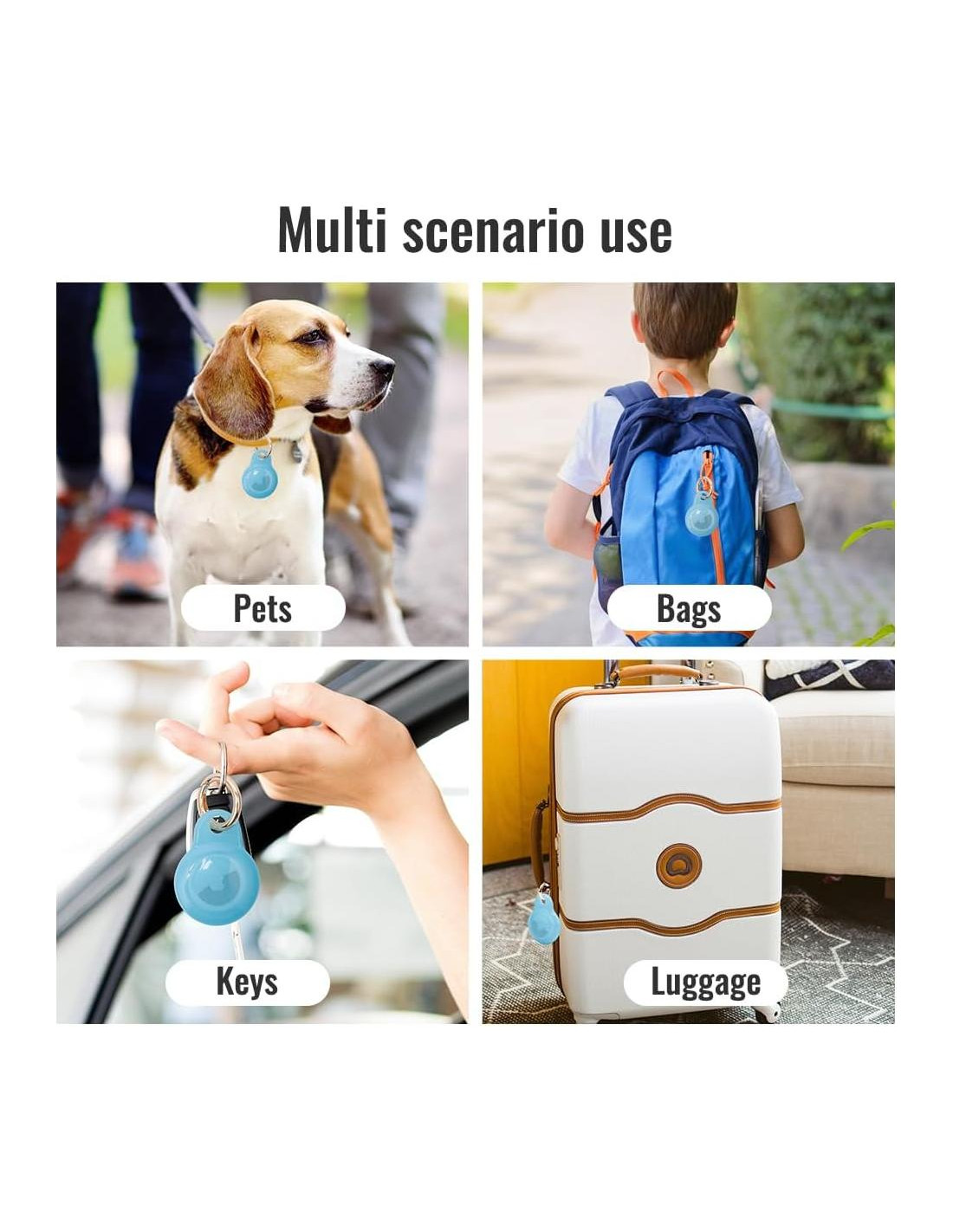 - [Llave Antipérdida] Esta Funda para Air Tag Está Equipado con un Llave de Aleación de Zinc de Metal Completo, Que No es Fácil de Oxidar y es Fuerte. Puedes Adjuntar el Soporte para Airtag a Llaveros de Autos, Bolsas, Equipaje de Viaje, Mochilas de Niños, Collares de Perros/Gatos y Otros Collares de Mascotas, Objetos de Valor y Más