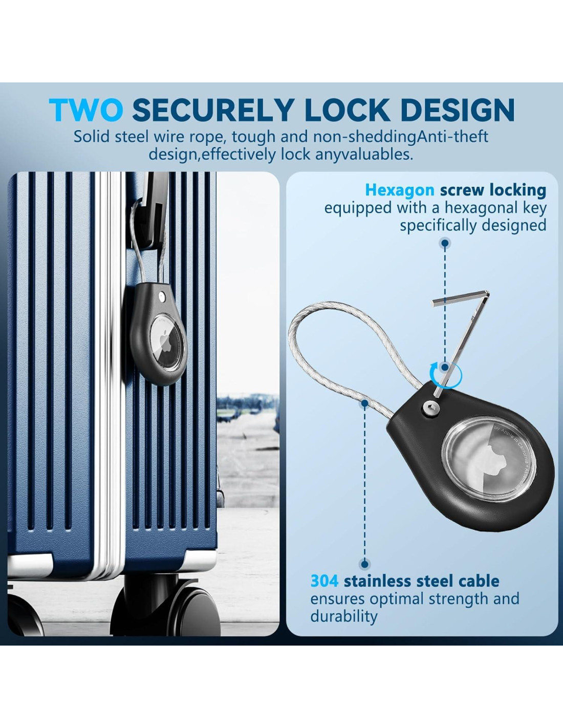 - Diseño Antipérdida: Esta funda para AirTag cuenta con un sistema de bloqueo con llave Allen y un cable de acero inoxidable duradero para mantener su AirTag de forma segura dentro del soporte seguro, minimizando el riesgo de perder sus pertenencias valiosas