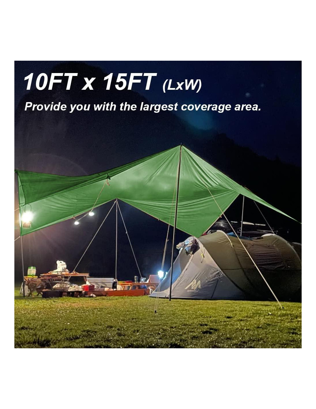 - Tamaño Grande: Nuestro toldo de camping proporciona una cobertura de 10x15 pies (3.05x4.57 metros), ideal para acomodar hamacas o tiendas para 8-10 personas.