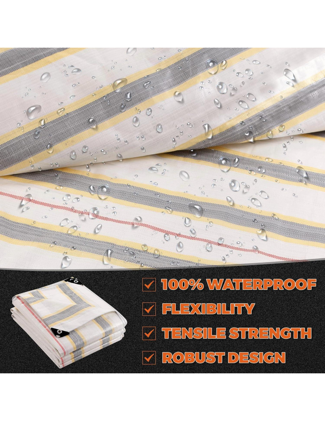 - MATERIAL DE ALTA CALIDAD Esta lona impermeable está hecha de material HDPE de alta calidad con ingredientes anti envejecimiento, lo que extiende la vida útil de la lona. Diseño de refuerzo de borde engrosado con cuerda de nylon en el interior, resistente a la tracción, resistente a arrugas, resistente a desgarros, inodoro, lavable y reutilizable