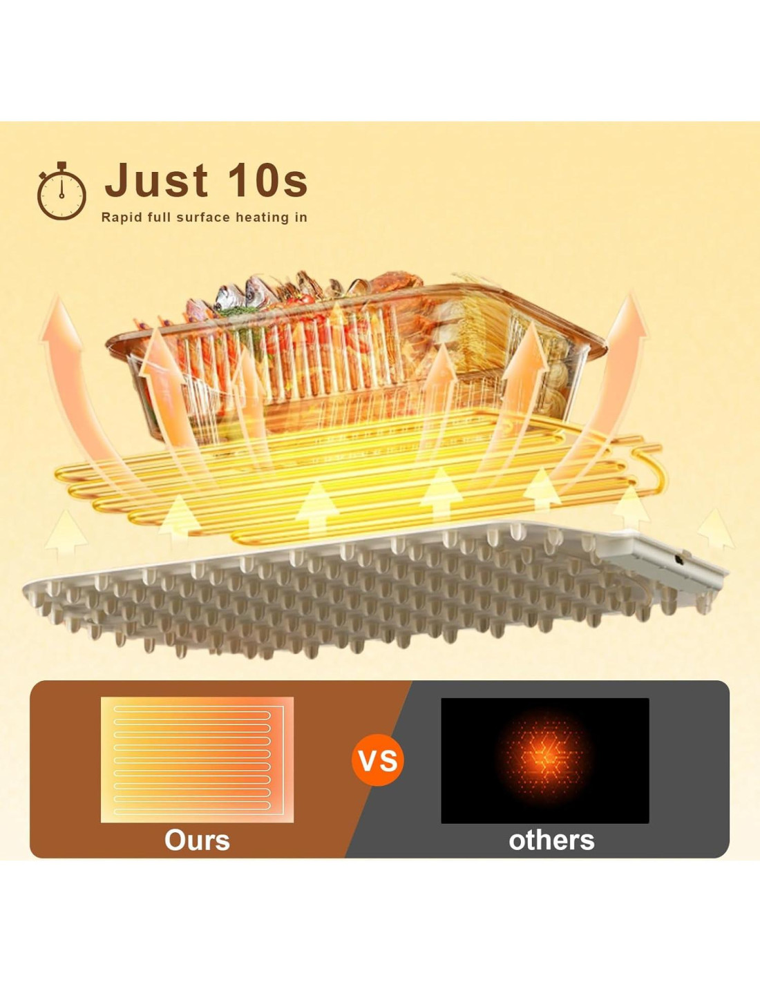 - [Calentamiento Rápido y Uniforme en 10s - Alfombrilla Calentadora de Comida Eficiente para Encimera] Nuestra alfombrilla calentadora de comida mejorada se calienta en solo 10 segundos con cobertura de superficie completa, asegurando una distribución uniforme del calor y evitando puntos fríos comunes en calentadores de comida eléctricos tradicionales. Diseñada para bandejas de comida grandes y pequeñas para fiestas, esta alfombrilla calefactora es ideal para buffets, cenas familiares y configuraciones de calentadores de comida para catering.