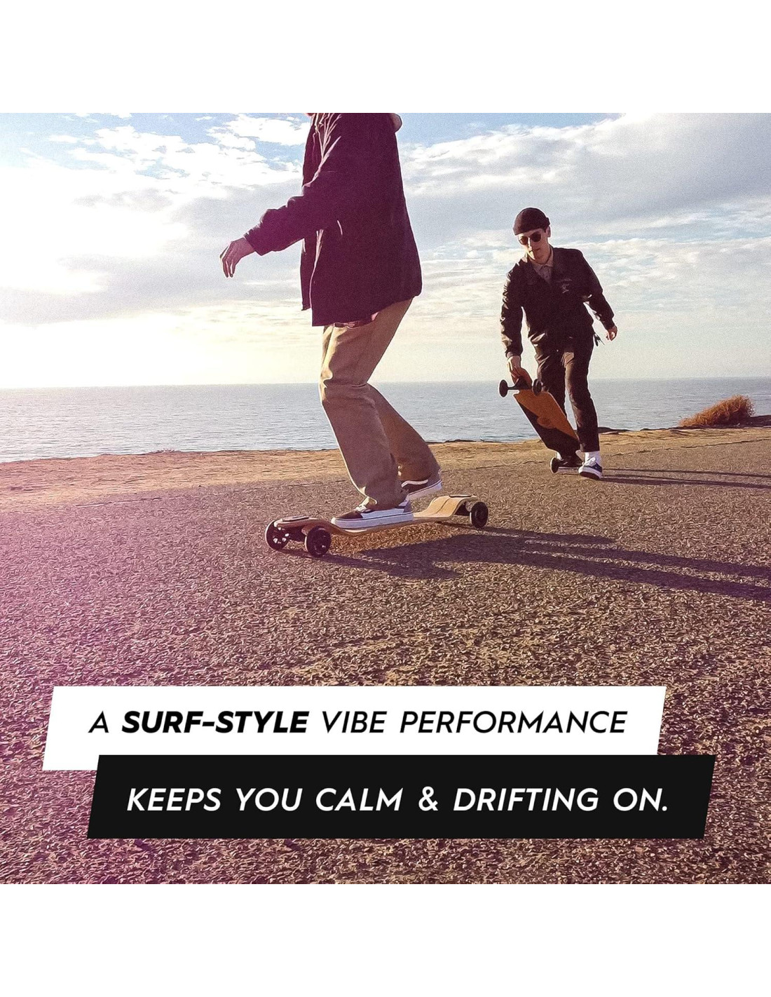 - SENSACIÓN ÚNICA DE SURF Y DRIFT La pequeña área de contacto de las ruedas hace que sientas que estás surfeando en estas tablas. Incluso puedes hacer que la parte trasera se deslice sutilmente, haciendo que se sienta como si estuvieras tallando una ola cristalina. La tabla tiene un gran drop de 45mm e incluso cuenta con un montaje de camión drop-through que mantiene todo bajo y cerca del suelo. Todo el ride y el rendimiento son muy únicos y muy divertidos.