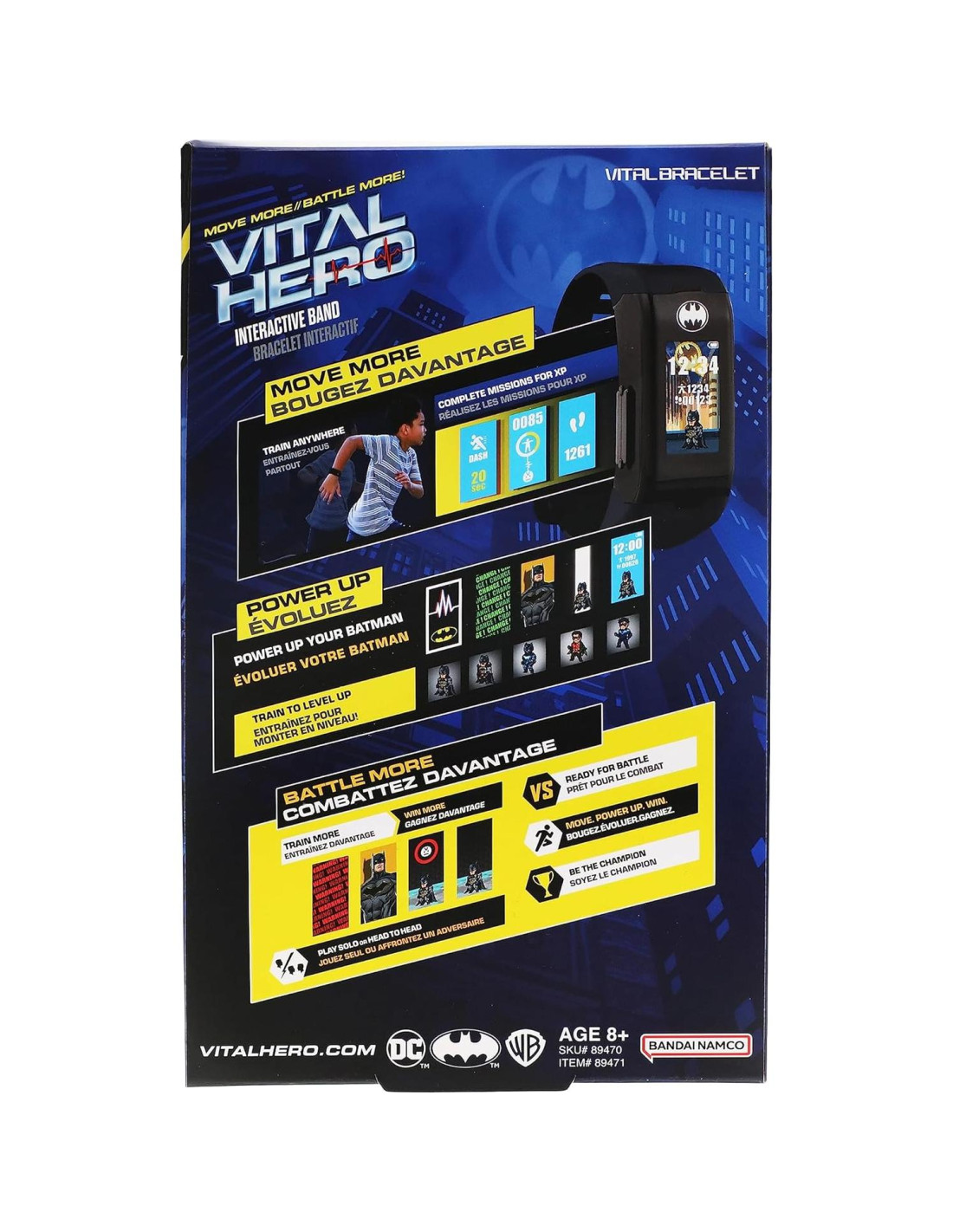 Héroe Vital Batman es una banda INTERACTIVA que muestra el progreso a medida que los niños juegan, completan misiones de actividad y compiten con amigos a través de la interacción con el personaje en este dispositivo portátil. Con una pantalla de LED a color y un monitor de actividad vital incorporado, cada banda viene con un superhéroe que puedes entrenar al completar una variedad de misiones, como boxeo de sombra, sentadillas, desafíos de velocidad, caminar y más. Cada misión y actividad diaria mejorará a tu superhéroe, haciéndolo más fuerte, llevándote a batallas y proporcionando diversión interminable en juego individual o con amigos. El rastreador de latidos y pasos incorporado se basa estrictamente en valores del juego y, por lo tanto, no es médicamente preciso.