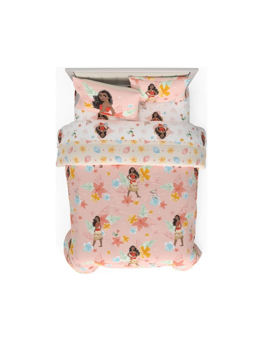- DOS DISEÑOS EN UN EDREDÓN: ¡Sumérgete en la aventura con este edredón reversible de Moana! El frente muestra a Moana en un hermoso entorno tropical, rodeada de flores vibrantes y sus amigos del océano en suaves tonos de rosa y rubor. Dale la vuelta para un divertido estampado repetido de Moana y acentos florales, ofreciendo dos looks mágicos en un acogedor edredón. ¡Perfecto para pequeños exploradores que sueñan en grande!