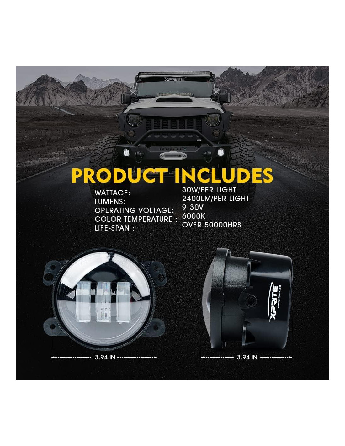 - Luces de Niebla LED de Alta Intensidad: Las luces de niebla LED de 4 pulgadas de Xprite proporcionan una mayor iluminación para mejorar la visibilidad en la carretera.
