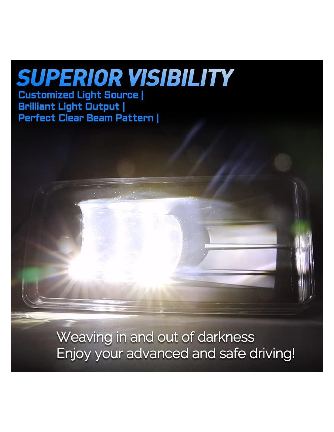 - 200% Más Brillantes que Halógenas - Flujo luminoso: 2400LM/par, Chips LED de Alta Potencia de 6000K Integrados para Maximizar la Iluminación alrededor de su Vehículo. Utiliza la última tecnología óptica que hace que la luz sea mucho más blanca y lejana.