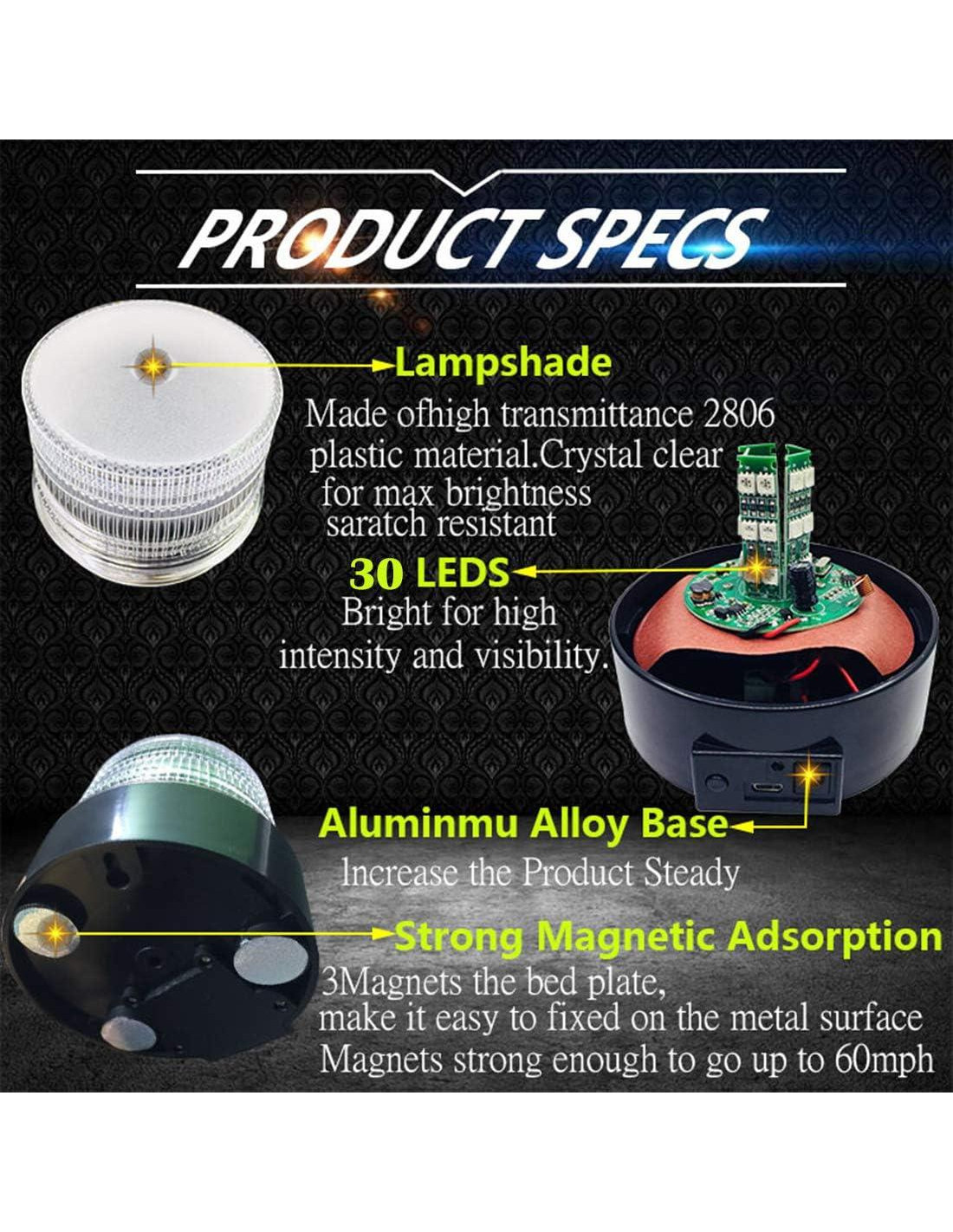 - Alta visibilidad: Con 30 luces de emergencia parpadeantes extremadamente brillantes, esta luz estroboscópica de advertencia es visible desde hasta una milla (1.61 km) de distancia por la noche. Advierte a los vehículos que se acercan que reduzcan la velocidad y se acerquen de manera segura, y ayuda a los respondedores de emergencia a verte al lado de la carretera. Es más brillante y efectiva que las luces estroboscópicas LED estándar, y visible incluso durante el día.