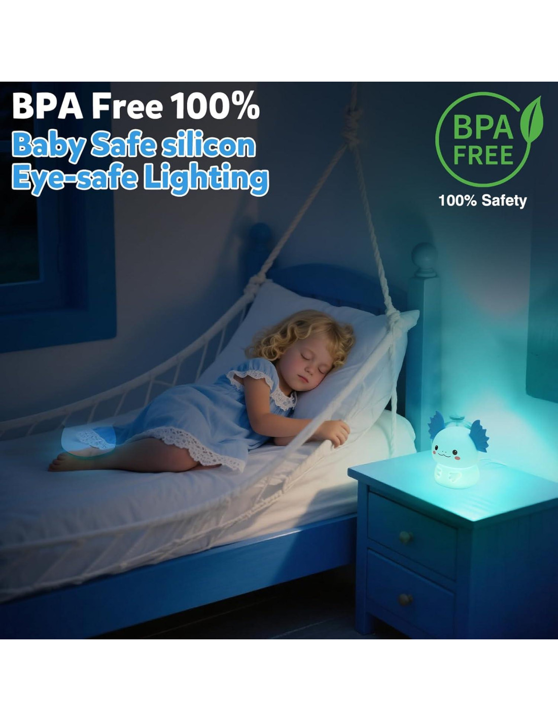 - [Control táctil divertido y 7 colores se pueden cambiar a voluntad] Desliza el interruptor hacia la izquierda para activar el modo de luz de siete colores. Sensor táctil sensible incorporado, la manita del bebé puede tocarlo fácilmente, puedes cambiar libremente entre los siete colores de ensueño, añadiendo diversión infinita a la hora de dormir.