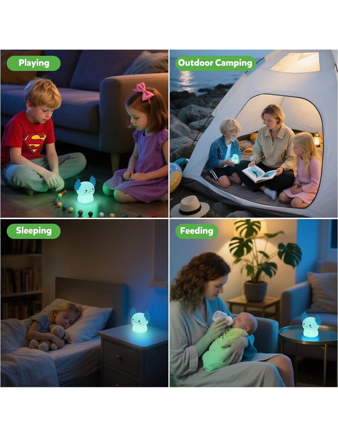 - [Modelado lindo e interesante y aplicable a múltiples escenas] Modelado lindo de Axolote, ilumina instantáneamente el corazón de los niños. No solo es una luz nocturna acogedora para la habitación de los niños, la habitación del bebé, dormitorios, guarderías, sino también un regalo considerado para cumpleaños, vacaciones o pensamientos diarios.