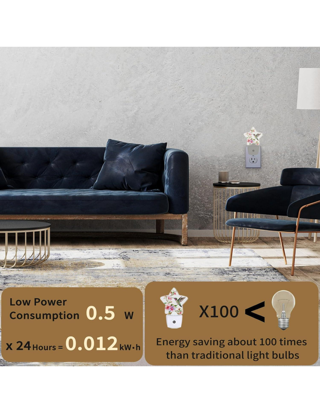 - Sensor de Luz y Encendido/Apagado Automático: Esta luz nocturna enchufable cuenta con un sensor de crepúsculo a amanecer incorporado, que se enciende automáticamente cuando oscurece y se apaga al amanecer. Proporciona un suave resplandor cálido que facilita el movimiento nocturno sin molestar a los demás.