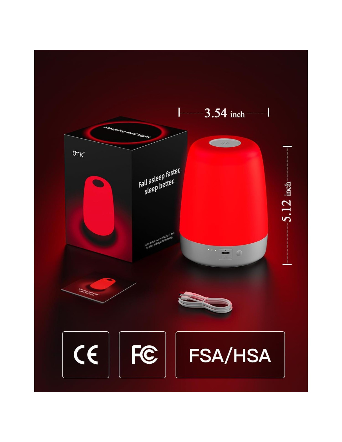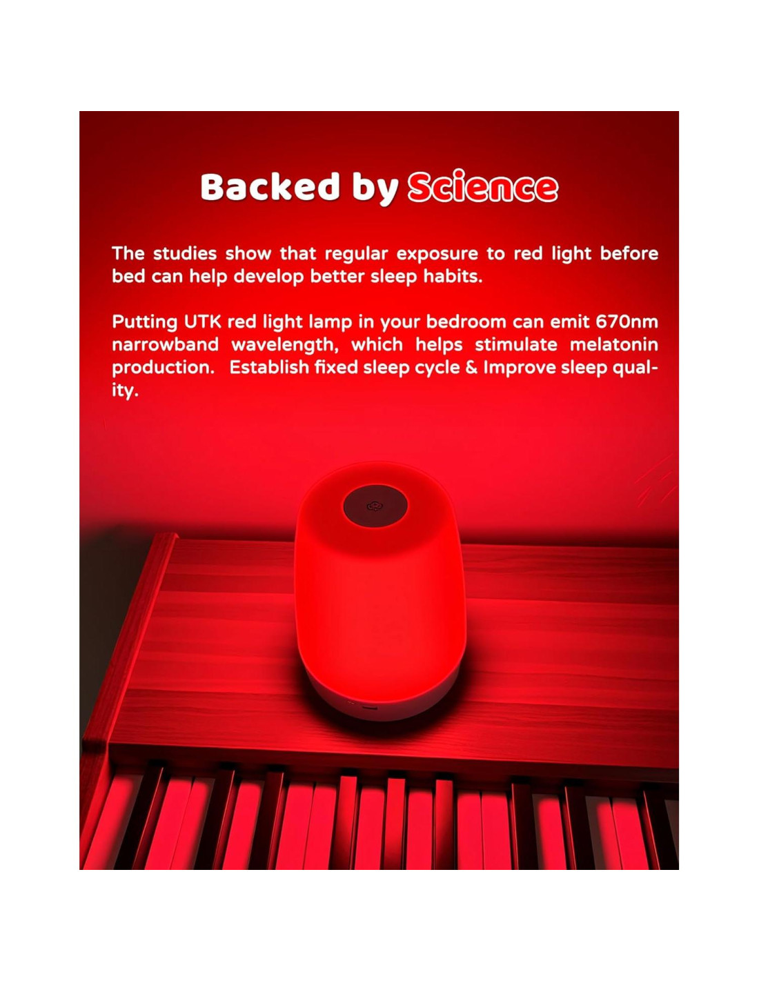 - [ Terapia de Luz Roja Natural para Mejorar el Sueño] : Las luces nocturnas rojas UTK emiten luz roja que pasa a través de los párpados, eliminando la luz azul que tiene un impacto negativo en el ciclo del sueño. Y desencadenan respuestas biológicas que te ayudan a relajarte y a dormir más rápido. La ciencia ha demostrado que la luz roja con una longitud de onda de 670 nanómetros ayuda a regular el ritmo circadiano y promueve la secreción de melatonina, facilitando así un sueño más profundo y relajante. Úsala en el dormitorio para que adultos y niños se duerman de forma natural.