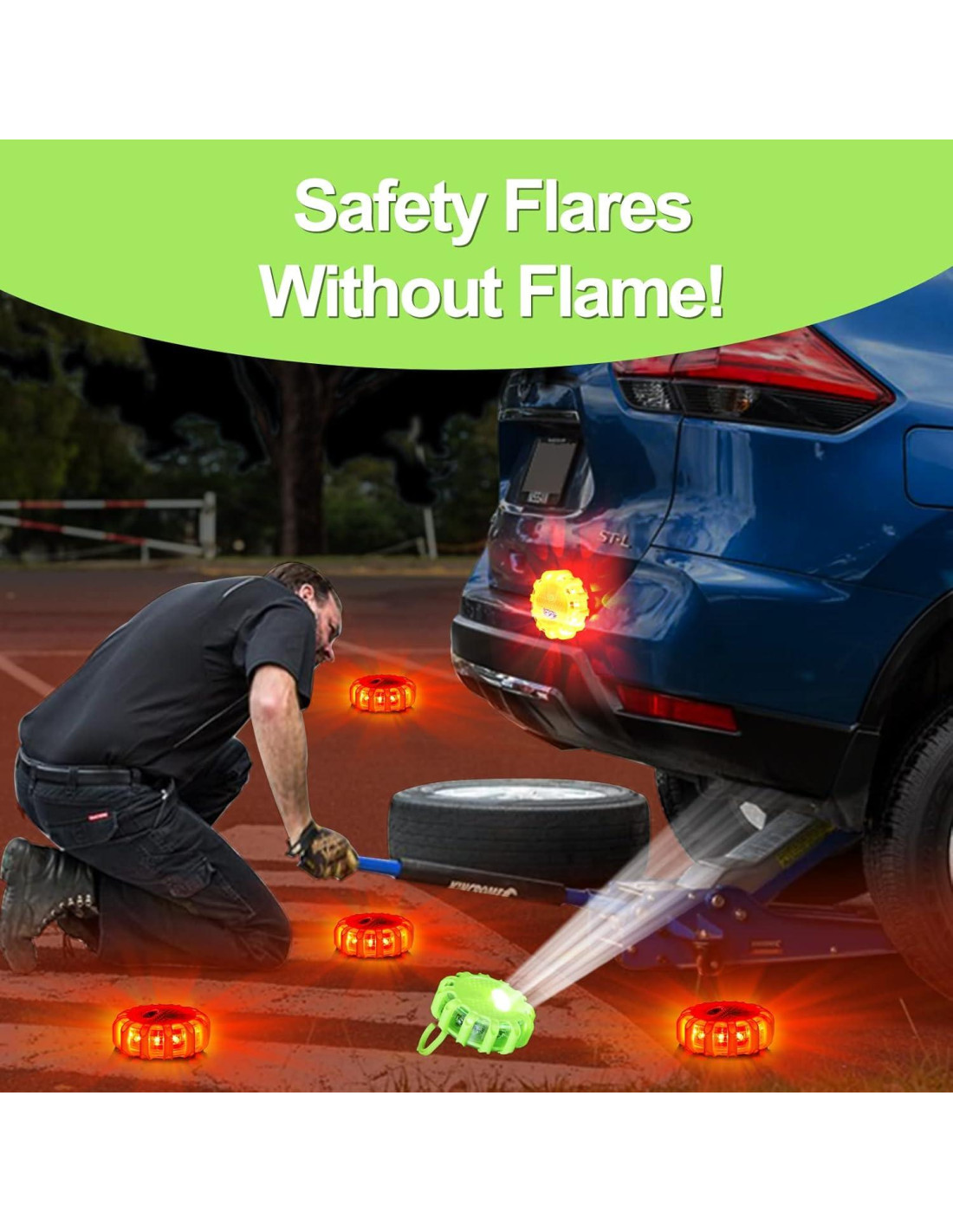 - [SEGURIDAD DEL VEHÍCULO] - 6 Paquete de Luces de Emergencia LED Señales de Carretera con bolsa de almacenamiento, un kit de seguridad que debes tener para coches, camiones, barcos, vehículos, motocicletas o emergencias marinas. Un kit de emergencia perfecto para mantener en el maletero de los vehículos para emergencias en la carretera y situaciones de angustia. (Funciona con 3 baterías AAA, baterías no incluidas en el paquete)