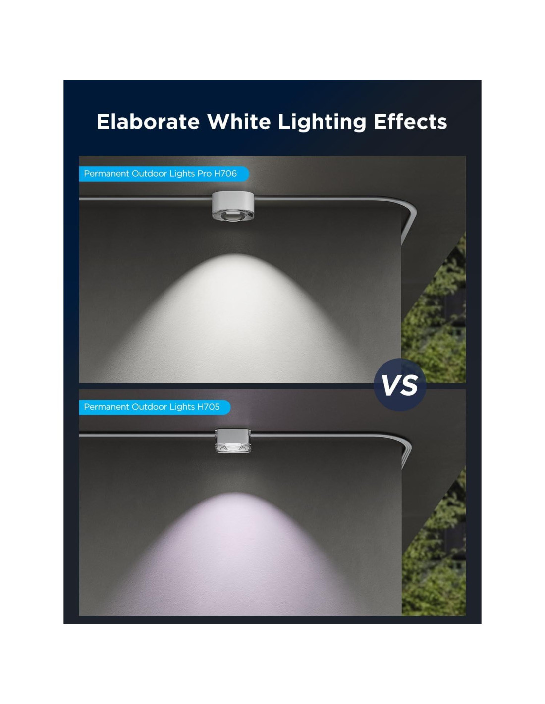 - Iluminación Cálida Blanca y Fría Mejorada: Las luces exteriores Govee pueden hacer más que iluminación navideña. También se pueden usar para iluminación diaria y de acento. Con hasta 50 lm por luz, la temperatura de color de las luces permanentes está entre 2700K-6500K.