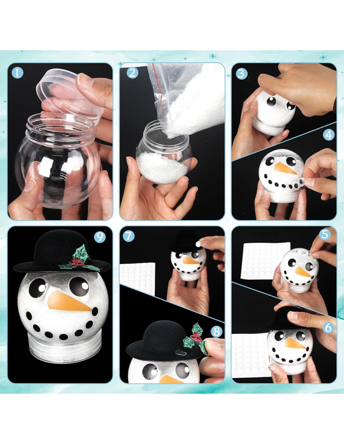 - [Kit de Globo de Nieve de Navidad] Recibirás 24 globos de nieve rellenables transparentes, 24 mini sombreros y lazos, 4 adorables etiquetas de muñeco de nieve y un paquete de nieve falsa; La abundante cantidad es suficiente para tu uso diario y reemplazo; Decoraciones especiales añaden ambiente navideño e invernal a tu hogar.