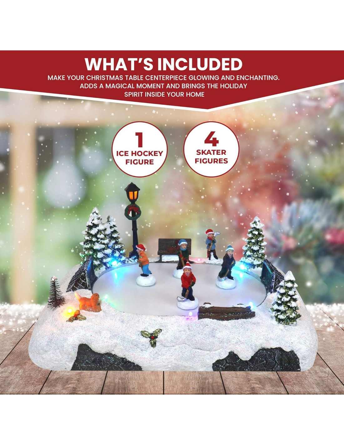 - REALISTA - Esta Pista de Patinaje de Hockey del Pueblo Navideño Iluminada, una adición perfecta a cualquier Pueblo de Casas Navideñas, es tan realista que sentirás que estás en un país de las maravillas invernales. Añade este Pueblo de Nieve Iluminado a tus Decoraciones Navideñas de interior y crea una exhibición mágica para las fiestas.