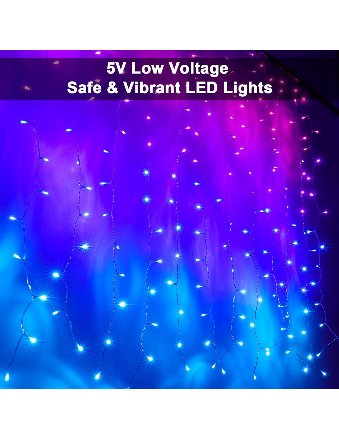 ¿Quieres traer más diversión y un brillo atractivo para tus chicas o tu habitación? ¡No puedes perderte estas luces de hadas arcoíris que brillan con bonitos colores ombre rosa, azul y púrpura! ¡Mira la magia que puede hacer! Ofrecerá la iluminación ambiental más dulce y la decoración más adorable para el dormitorio, habitación de chicas, habitación de niños. ¡Es una forma segura de convertir cualquier habitación o espacio en un fabuloso país de las maravillas y un lugar más feliz! ¡Es la mejor opción para elegir como un increíble regalo de cumpleaños y regalo de vacaciones para tus chicas! 100% Satisfacción Garantizada. ¡Garantizamos tu 100% de satisfacción! Si tienes algún problema, contáctanos, se ofrecerá reembolso o reemplazo (de hecho, ni siquiera tienes que devolver el set). No dudes, ¡ordena ahora, te encantará! Especificaciones: Color: Rosa, Púrpura, Azul, Cian Tamaño: 1.49 m de ancho, 1.55 m de largo Cantidad de cuerdas: 12 hebras verticales Espaciado de cuerdas: 12.7 cm Cantidad de LEDs: 192 LEDs Longitud del cable de alimentación: 2.5 m Alimentación USB segura (Entrada DC5V) Regulable: Sí, 6 pasos Paquete incluido: 1*Luces de cortina ombre rosa púrpura azul operadas por USB 1*Interruptor regulador en línea 1*Manual del usuario Nota: 1. El producto son luces de cuerda, no incluye una cortina. 2. El cargador USB no está incluido. 3. La hebilla blanca es para fijar el cable de alimentación principal, no se puede cortar, ¡o las luces de cuerda se separarán! 4. Para evitar enredos, cuelga primero la línea principal antes de quitar la atadura de torsión de las 12 hebras verticales.