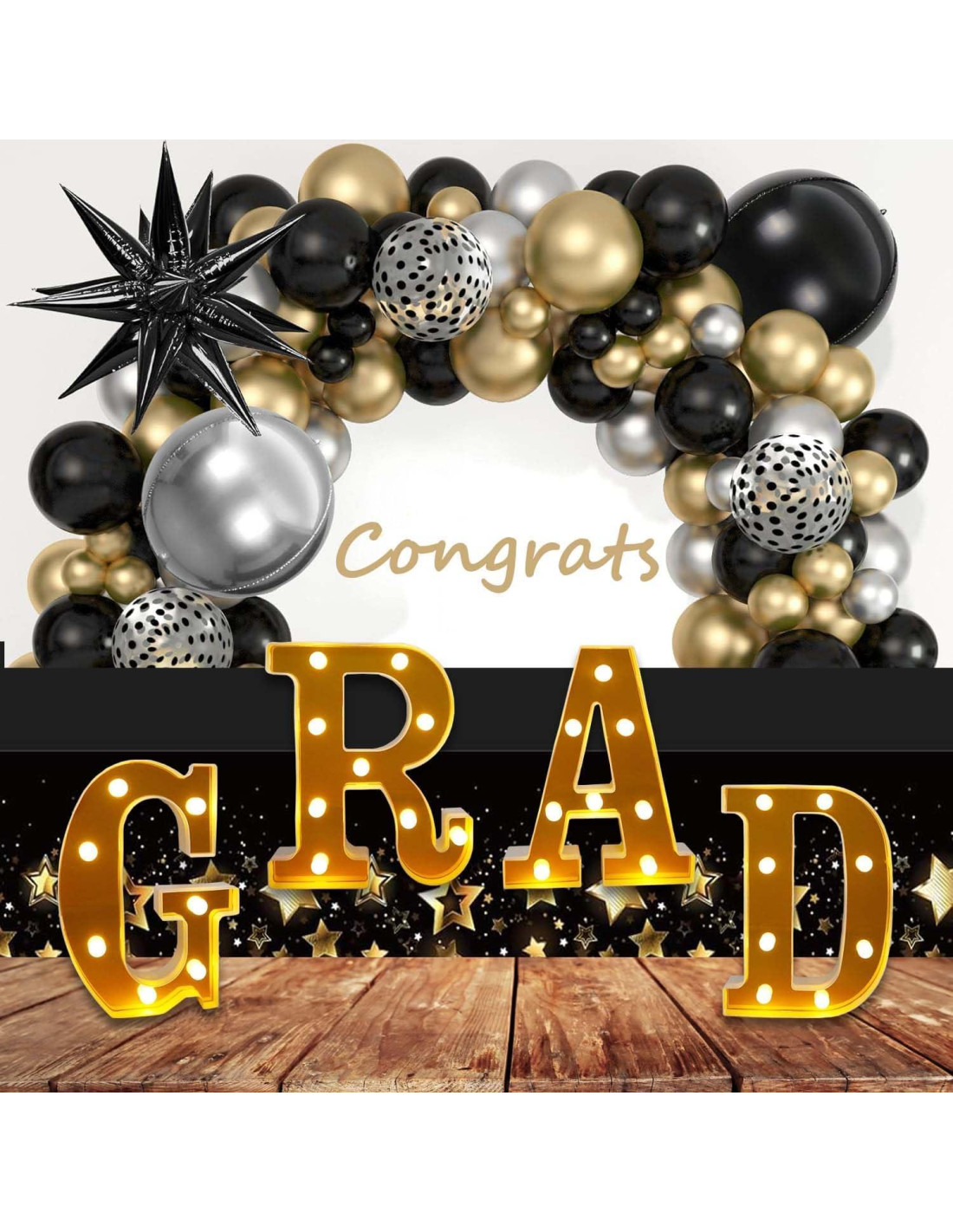 - Haz que tu clase o fiesta de graduación 2024 sea la mejor posible con estos suministros y decoraciones, diseñados en las letras de [GRAD], que pueden iluminar tu fiesta de graduación, llamativos centros de mesa para tu fiesta; Ten en cuenta que la batería no está incluida.
