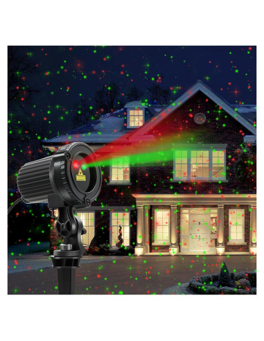 - [Luces láser de Navidad para exterior] Luces rojas y verdes parpadean en paredes, techos y jardines. Cuando se enciende la luz, las paredes y árboles del jardín se iluminan inmediatamente con brillantes luces verdes y rojas.