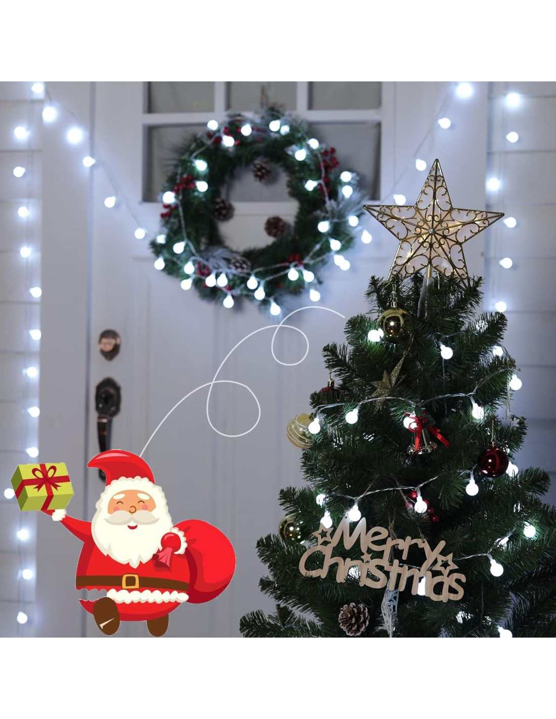 - Ampliamente utilizadas: Estas luces de cuerda se pueden usar para iluminación interior o exterior. Las luces crean un ambiente festivo. Estas son la mejor opción para árboles de Navidad y guirnaldas. Ideales para decoración de ambiente en tu dormitorio, sala de estar, balcón, jardín, patio, carpa, toldo, hotel, etc. También son perfectas como regalos para familiares y amigos