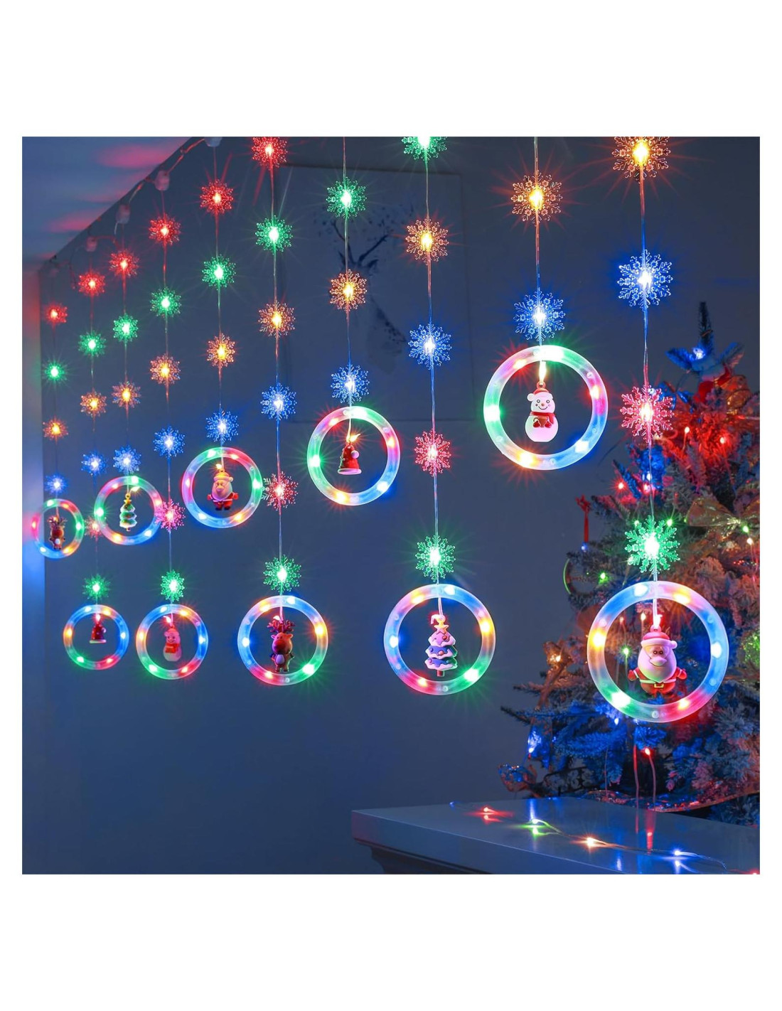 - Decoraciones de Navidad Tradicionales para Ventanas: Las decoraciones de luces de Navidad para ventanas vienen con 10 anillos para luces colgantes de Navidad, conectados con 10 adornos divertidos y luces de hadas RGB (2 árboles de Navidad, 2 Papá Noel, 2 muñecos de nieve, 2 renos, 2 sombreros y 50 copos de nieve). Con un diseño de figuras navideñas novedosas, esta decoración navideña es una gran adición a cualquier actividad navideña para niños.