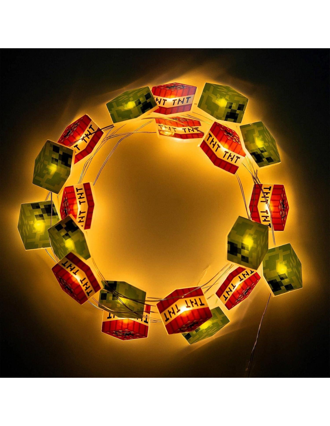 - EXPRESIÓN EXPLOSIVA DE FANATISMO: Muestra tu amor por Minecraft con estas luces de cadena con cabezas de Creeper alternando y bloques de TNT (10 cada uno).