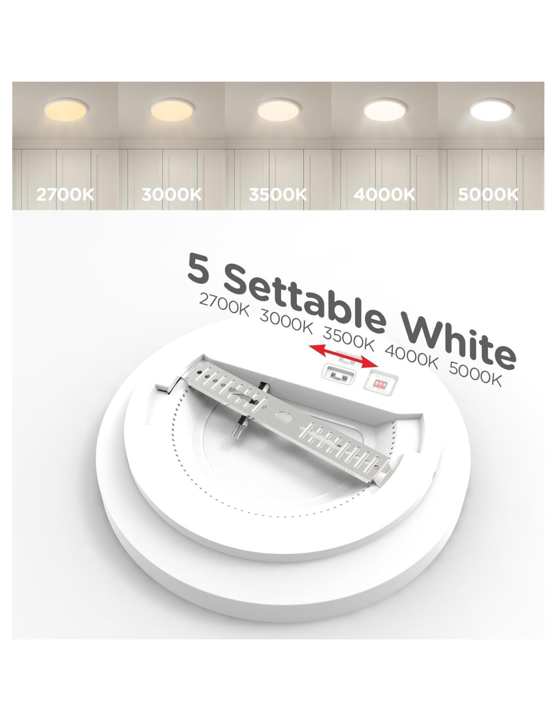 - Luz de techo con 5 temperaturas de color ajustables: Puedes seleccionar una Luz Blanca Suave (2700K), Luz Blanca Cálida (3000K), Luz Blanca Neutra Brillante (3500K), Luz Blanca Fría (4000K), y Luz de Día (5000K). Con un CRI/RA>80 para una presentación de COLOR VERDADERO.