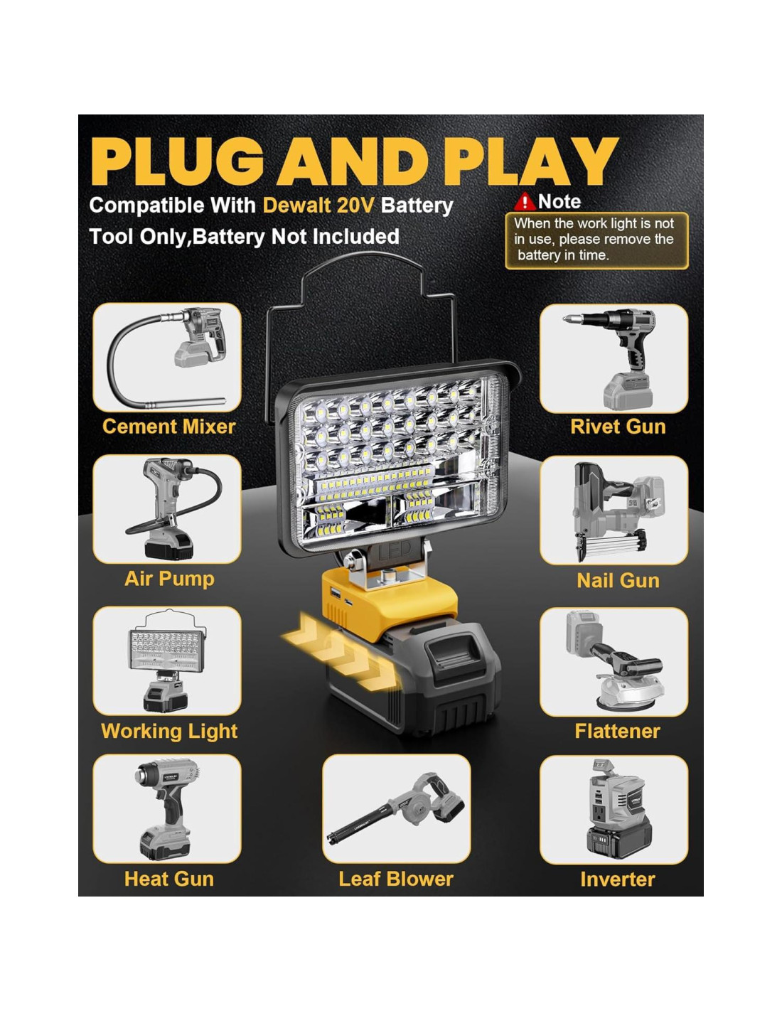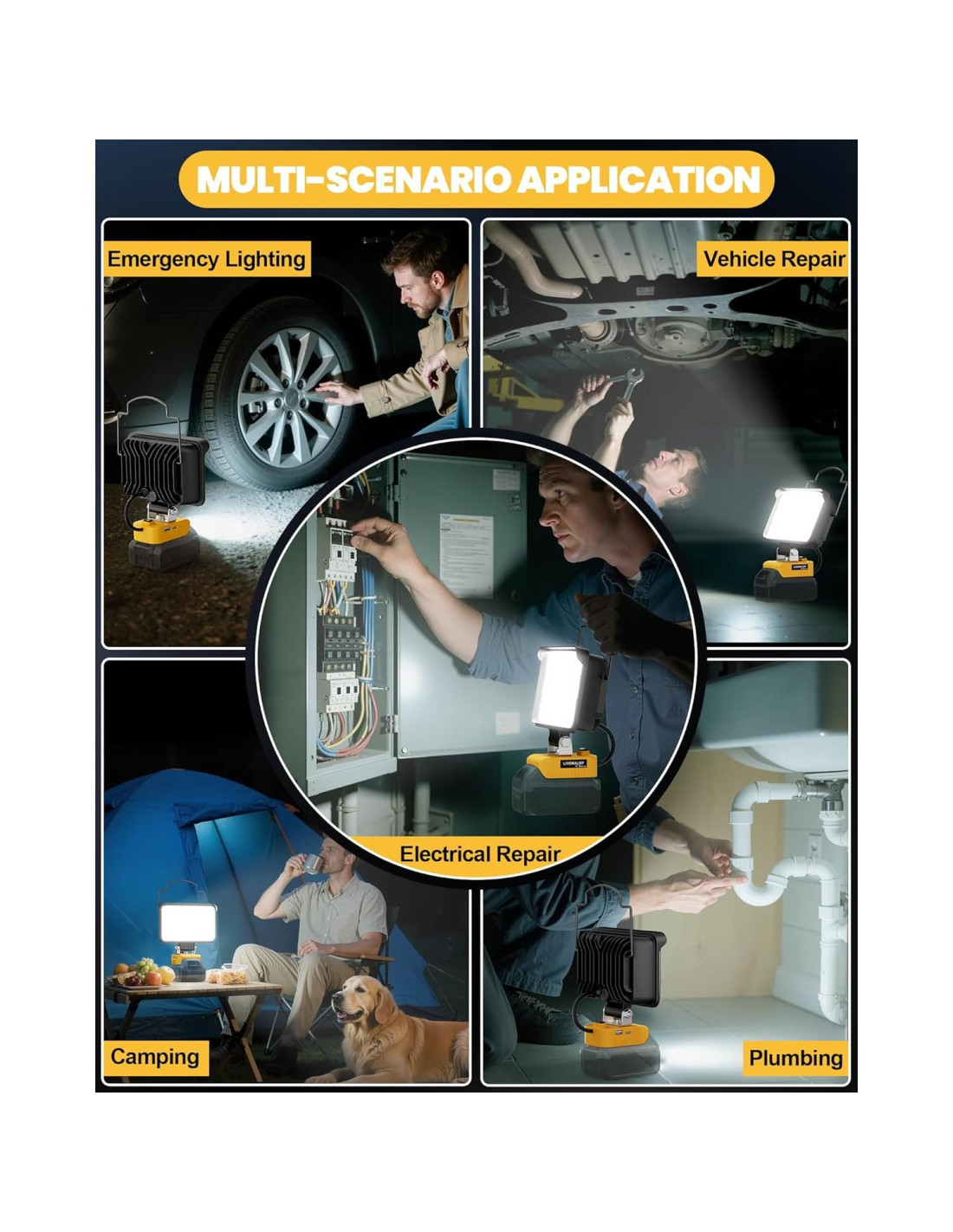 - [Amplia aplicabilidad & Garantía de 2 Años] --Esta luz de trabajo LED portátil es compatible con baterías de herramientas DeWalt de 20V. Puede ser utilizada en una variedad de escenarios como reparación de automóviles, mantenimiento de energía, instalación de plomería y electricidad, camping, iluminación de emergencia, etc. Las linternas LED de LIVOWALNY son confiables y vienen con una garantía de 2 años para asegurar tu tranquilidad. Nuestro servicio al cliente 24/7 está siempre disponible para ayudarte con cualquier pregunta que puedas tener.