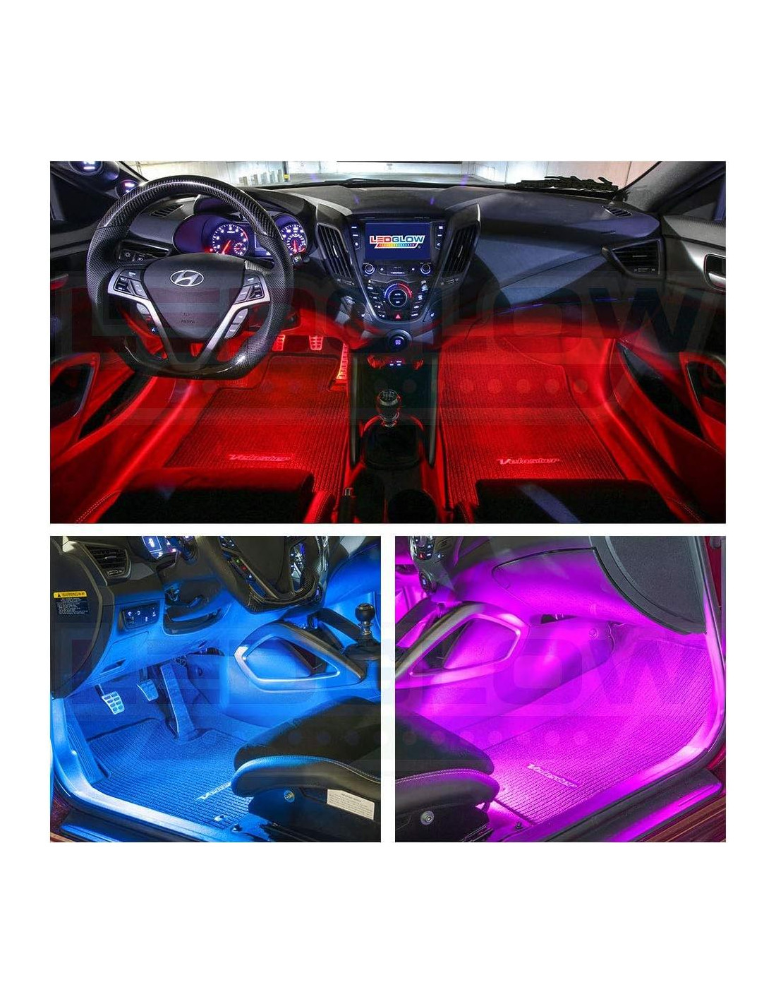 - Kit de Luz Interior LEDGlow de 6 Piezas Flexibles de Millón de Colores Agrega Iluminación Neón Multicolor Personalizada Bajo el Tablero y Asientos de Cualquier Auto o Camión
