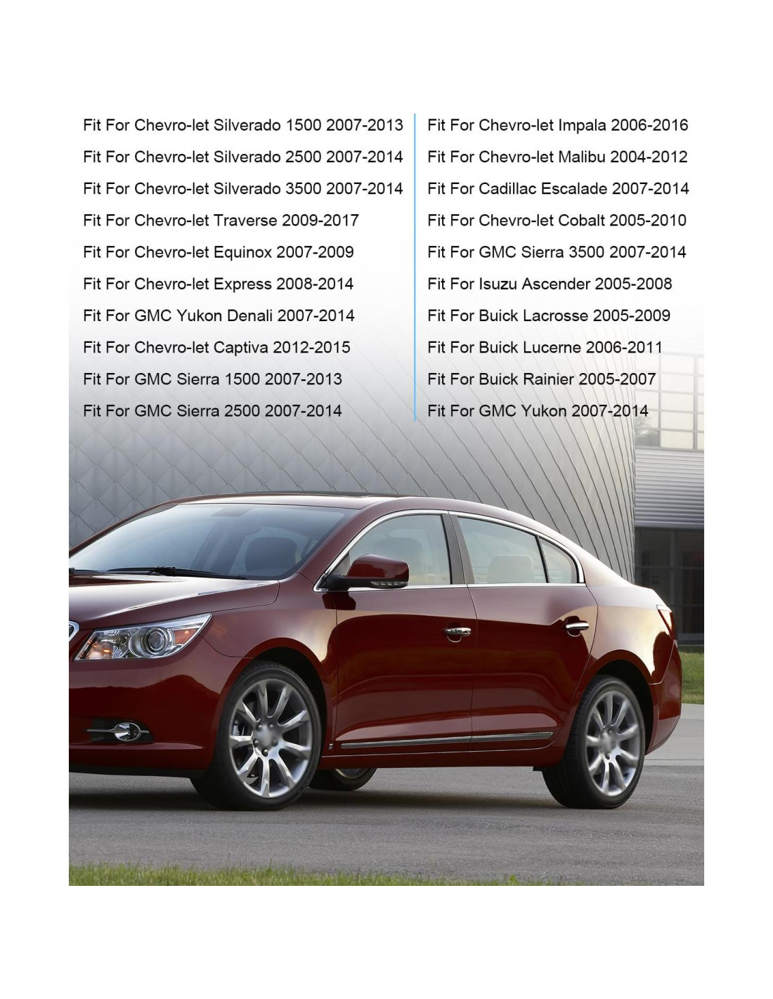 - Amplia Compatibilidad: Compatible con Buick Enclave Lacrosse Lesabre Rainier 2002-2012, compatible con Cadillac CTS Deville DTS Escalade Seville SRX STS XLR 2003-2012, compatible con Chevrolet Avalanche Bravada Caprice Captiva Corvette Malibu Silverado SSR Suburban Tahoe Traverse 2007-2012, compatible con GMC Acadia Acadia Bravada C3500 Envoy Sierra Silverado Yukon 2003-2012. Por favor, consulte la página de detalles para modelos de adaptación detallados