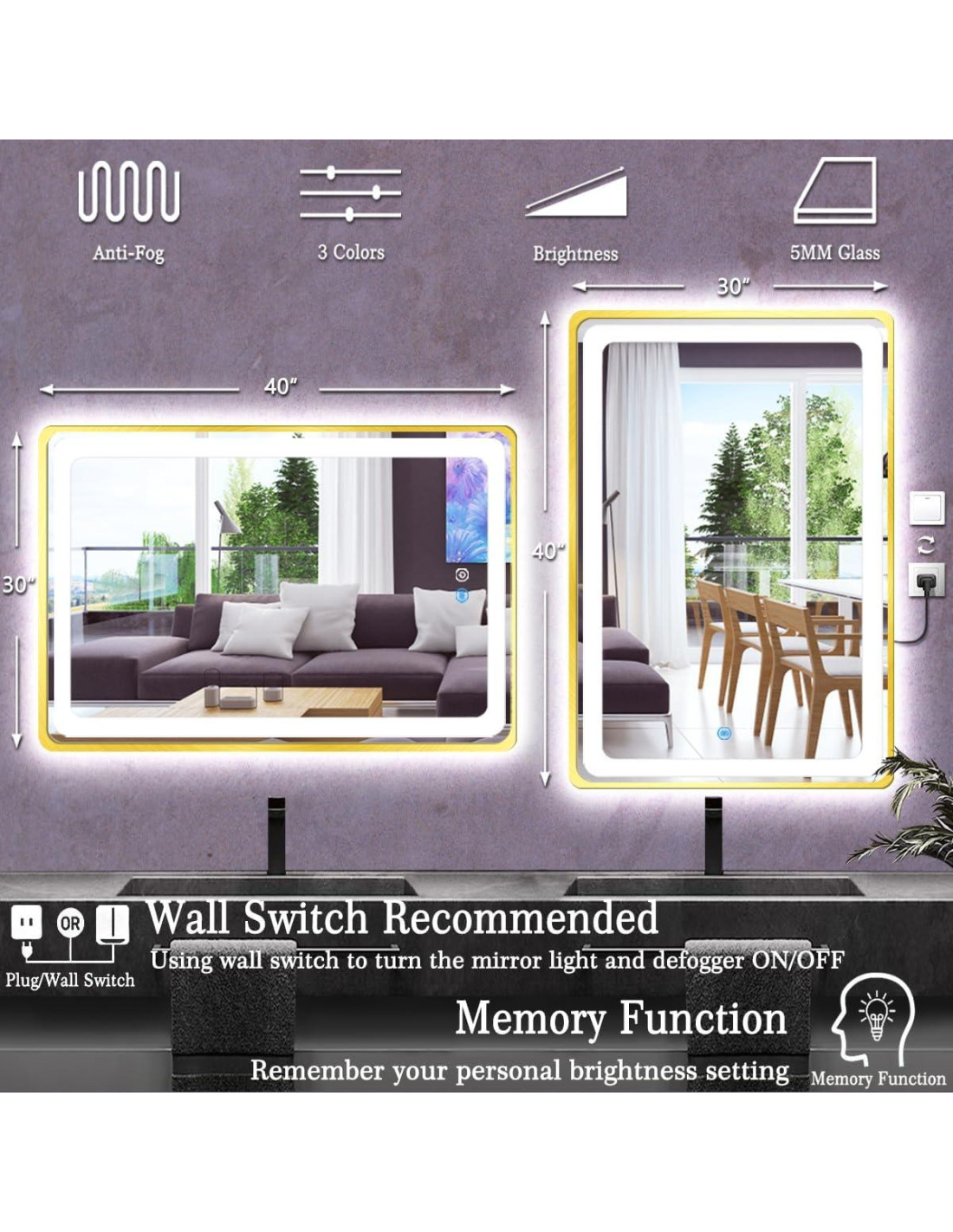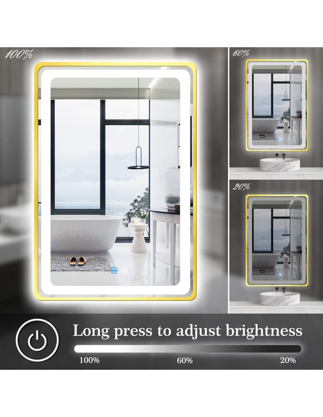 - Característica especial: Regulable, 3 Cambios de Color, Sin Vaho, Marco Dorado, Montaje Horizontal Vertical