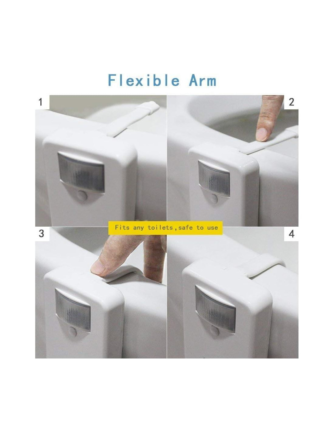 - FÁCIL DE INSTALAR Y LIMPIAR - Funciona con 3 baterías AA (1.5V), que duran mucho más que los artículos AAA, fácil de conseguir y cambiar. (Batería no incluida). El brazo flexible de la lámpara se adapta a cualquier forma de inodoro. Ultra resistente al agua y se puede limpiar con la mayoría de los limpiadores domésticos, un accesorio esencial útil para el baño