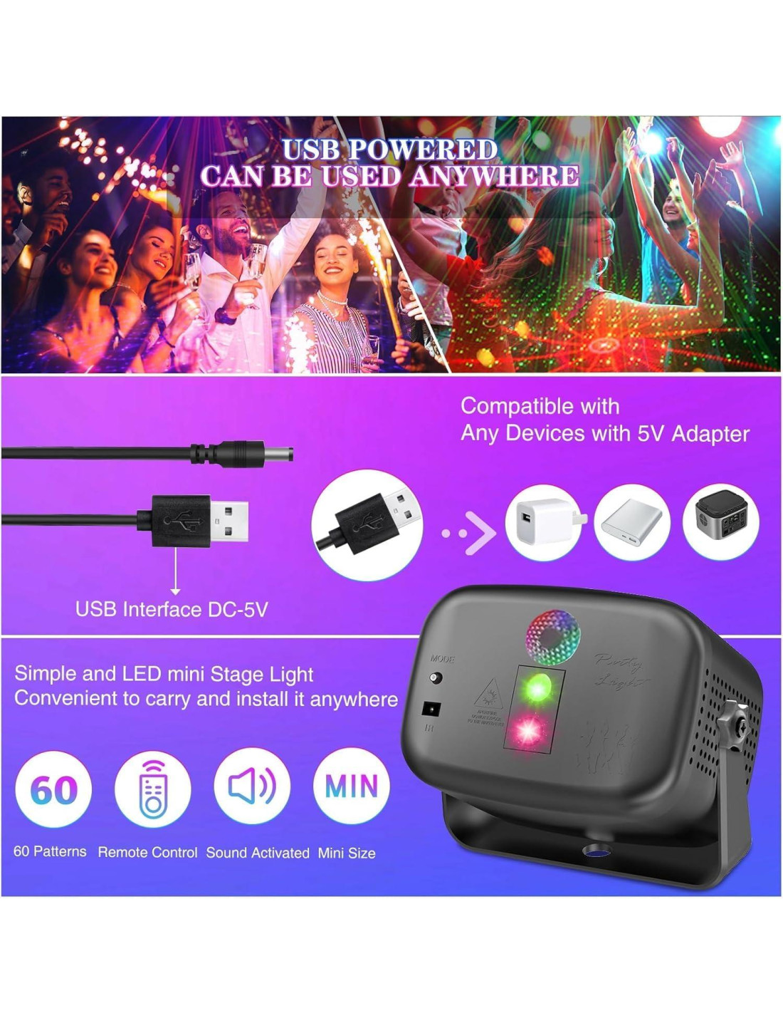 - [Diversas situaciones de utilización] Las luces de escenario mini pueden ser transportadas, pequeñas, prácticas y potentes, no solo se pueden usar en fiestas de disco, clubes, karaoke, bares, celebraciones familiares, fiestas de cumpleaños infantiles, actuaciones escolares, bodas, Halloween, Navidad y diversas actividades nocturnas, sino que también pueden servir como un fondo atmosférico para salas de e-sports y vlogs.