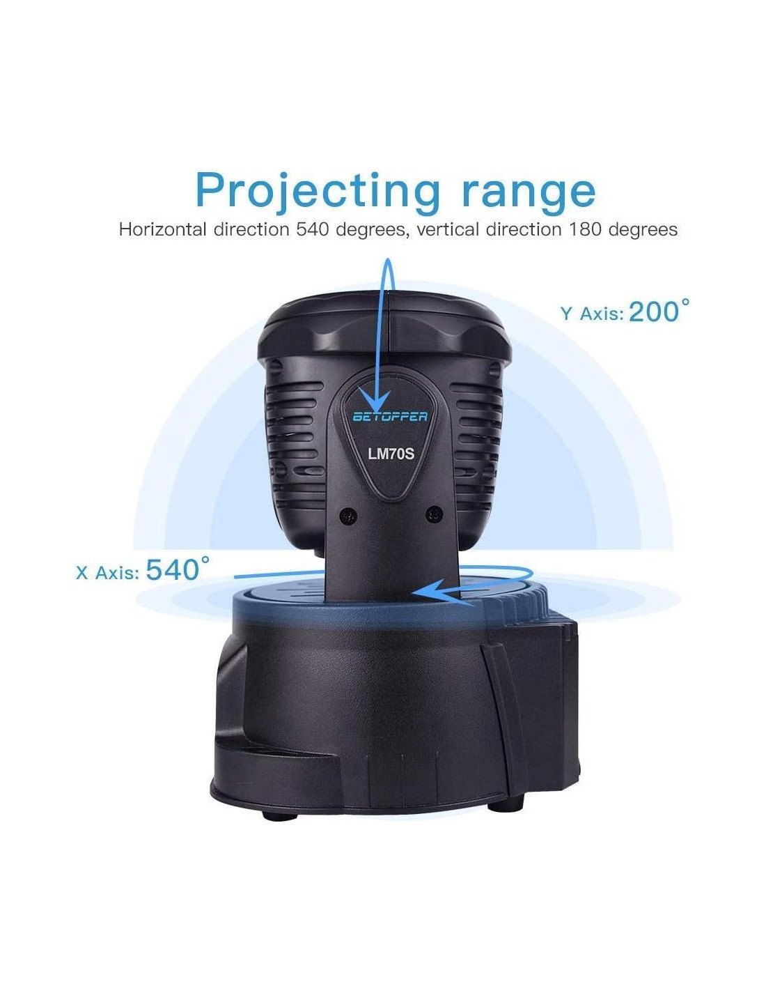 - Diseño Inteligente: Esta Luz DJ con Función de Luces de Lavado Respuesta rápida y precisa a través de un movimiento de motor suave. Eje X rotatable libremente 540 y eje Y 180, ideal para escenarios de tamaño mediano.