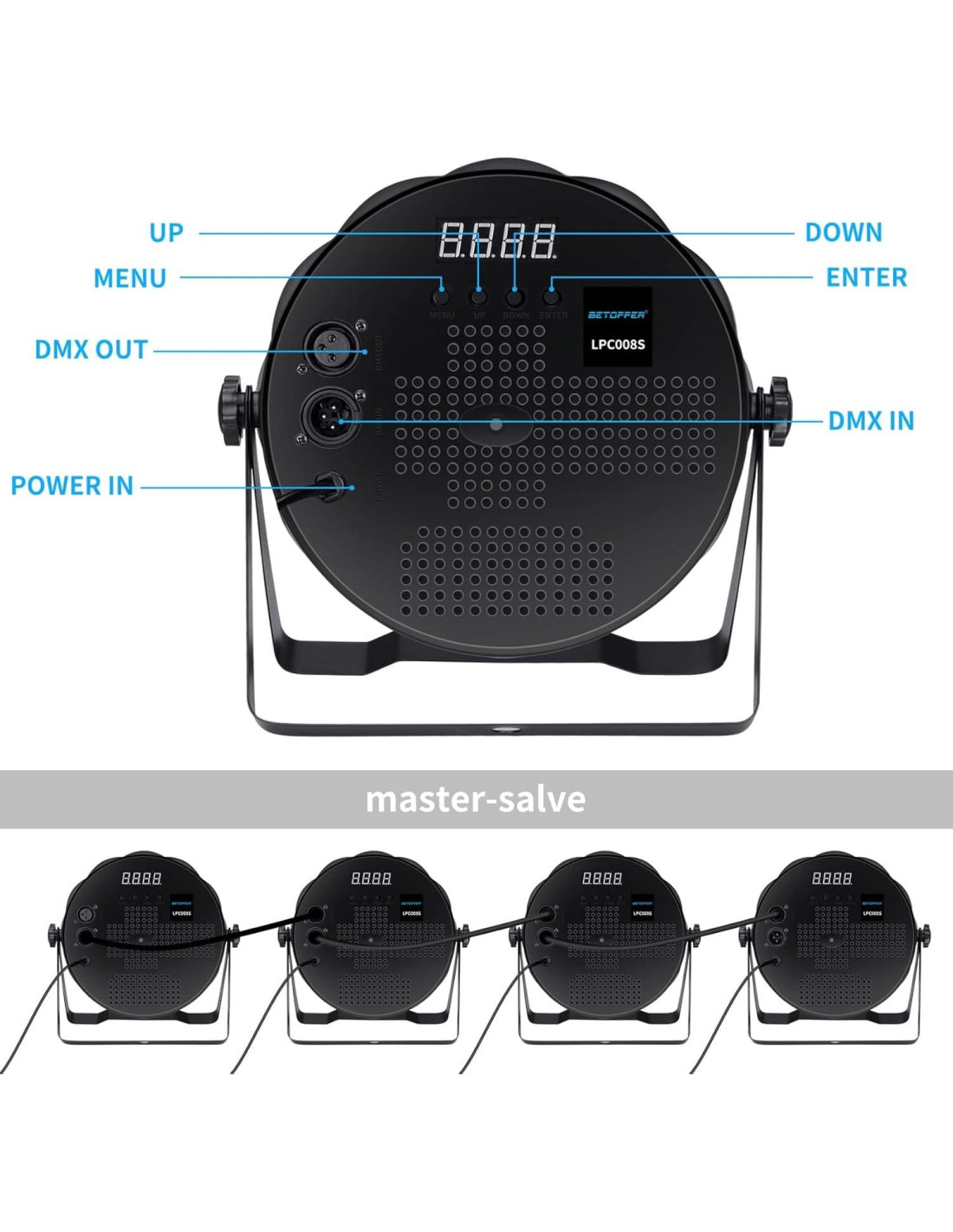 - [4 Modos de Control para Luces DJ] Modo automático / Modo controlado por sonido / Modo DMX512 / Modo maestro-esclavo. Ya seas un profesional o solo estés entreteniendo, esta es una adición perfecta para convertir cualquier fiesta en algo especial.